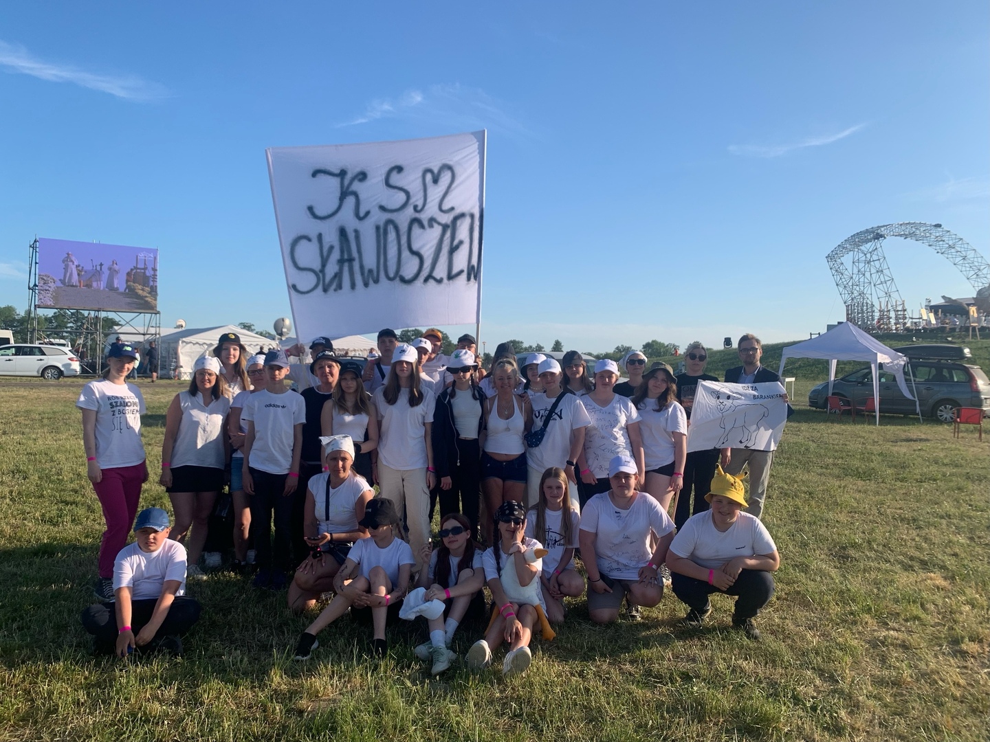 3 czerwca po raz 27 miało miejsce spotkanie młodzieży na polach lednickich, w którym uczestniczyli także uczniowie ze Szkoły Podstawowej w Sławoszewie pod opieką Pani Beaty Wieczorek. Tegoroczne hasło spotkania brzmiało "Idź za Barankiem". Uroczyste rozpoczęcie miało miejsce o godz. 17:00. Młodzież modliła się, śpiewała i dawała ogromne świadectwo wiary. Uczniowie znali tańce lednickie, gdyż wcześniej wykonywali je podczas ogólnopolskiego projektu: „FISHMOB – cała Polska tańczy dla Jana Pawła II”. O godz. 20:00 rozpoczęła się uroczysta msza święta, podczas której uczestnicy zachowali powagę i skupienie. Pogoda bardzo dopisała i nad Lednicą świeciło słońce. O godzinie 00:00 miało miejsce uroczyste przejście przez Bramę Tysiąclecia. W godzinach nocnych uczniowie powrócili do domów.