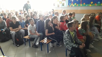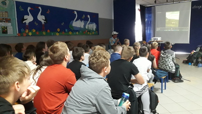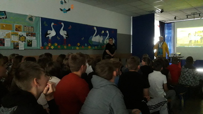 15 czerwca gościliśmy w naszej szkole polarnika Adama Włodarczyka, który w zeszłym roku uczestniczył w wyprawie na największą norweską wyspę, czyli Spitsbergen. Podróżnik opowiadał zgromadzonym na holu uczniom o wrażeniach z wędrówki po tej fascynującej krainie. Szczególną uwagę poświęcił tamtejszej faunie, wśród których króluje niedźwiedź polarny. W zasięgu wzroku i obiektywów uczestników wyjazdu znalazły się też lisy, renifery, a nawet wieloryb. Opowieści naszego gościa towarzyszyła prezentacja złożona ze zdjęć i filmów nagranych przez polarników z pleszewskiego powiatu. Po pokazie uczniowie mogli zadawać p. Włodarczykowi pytania.