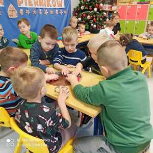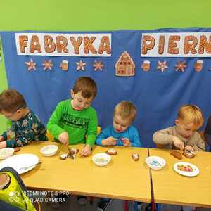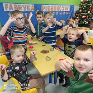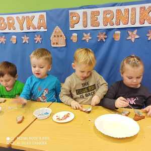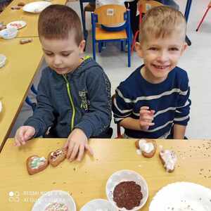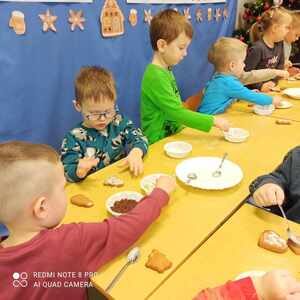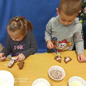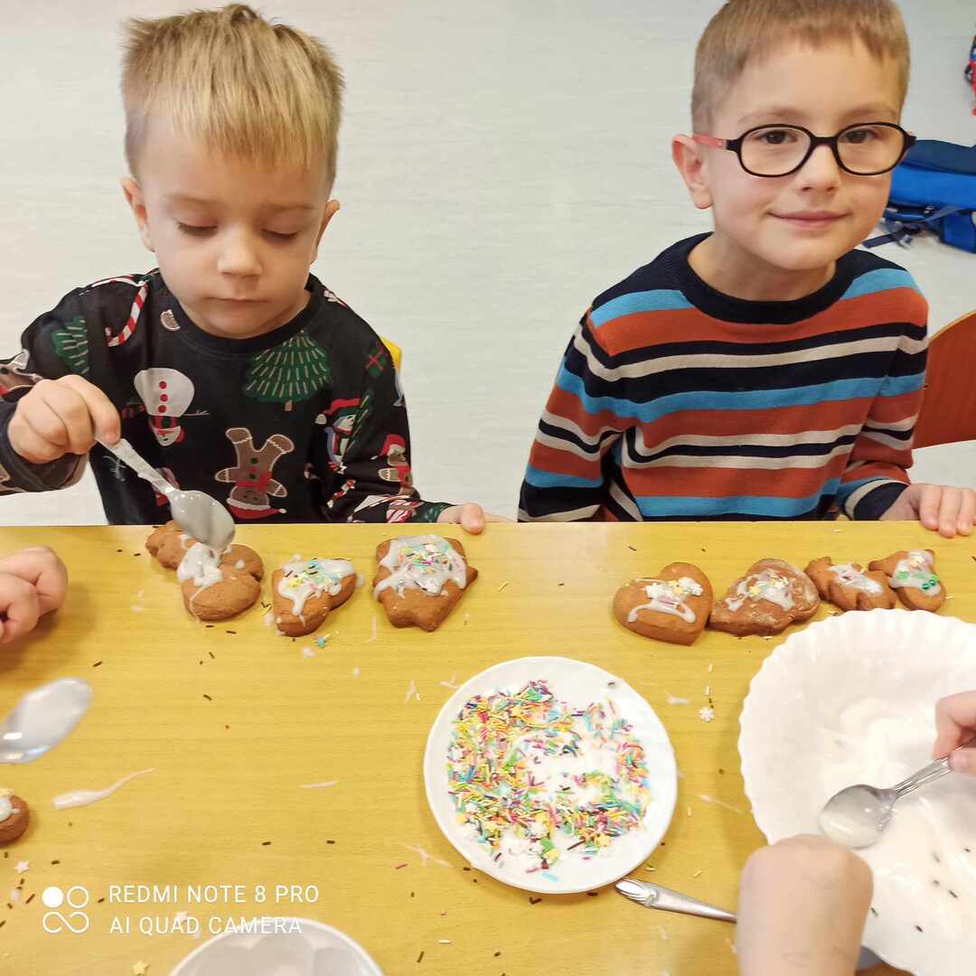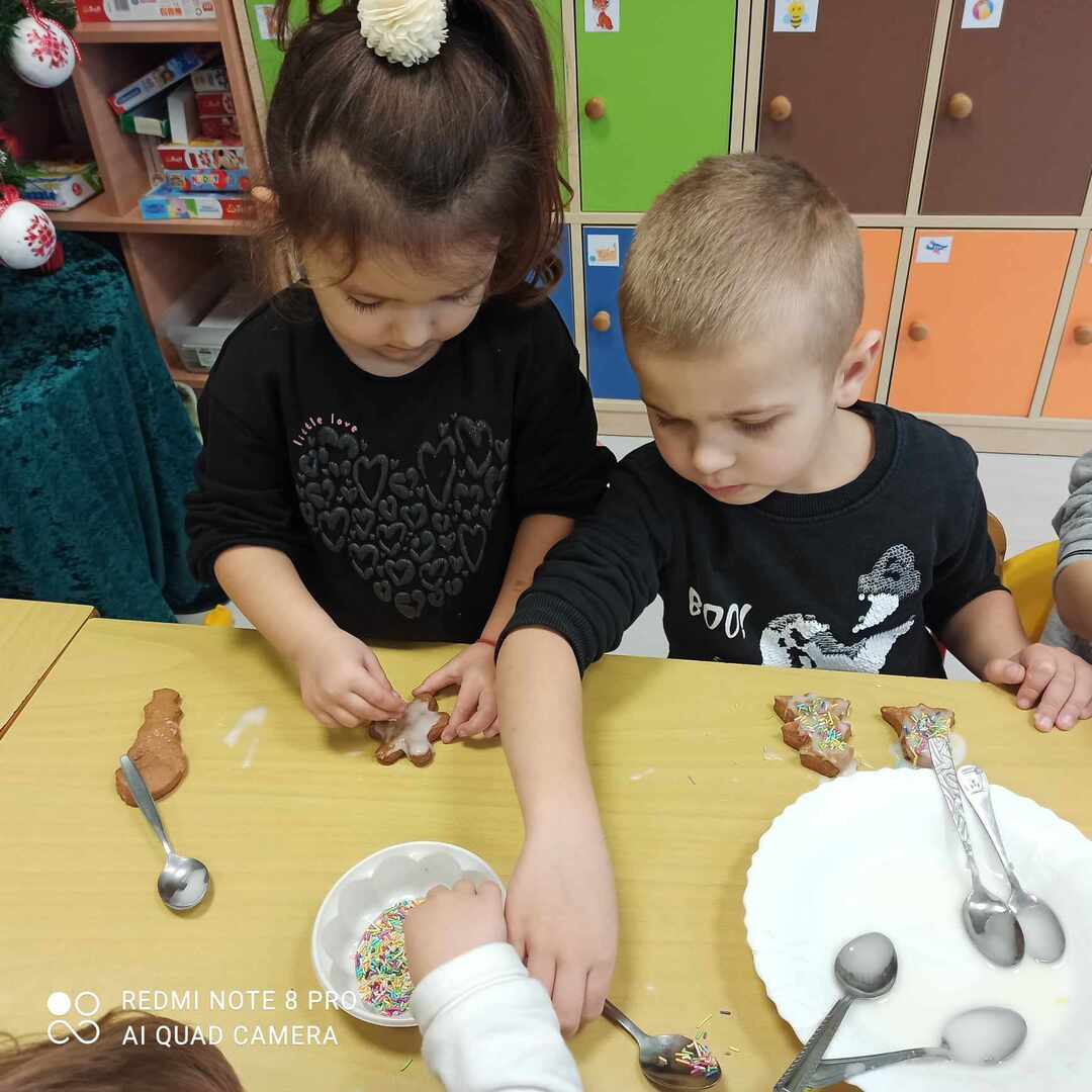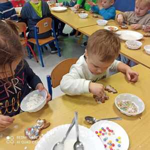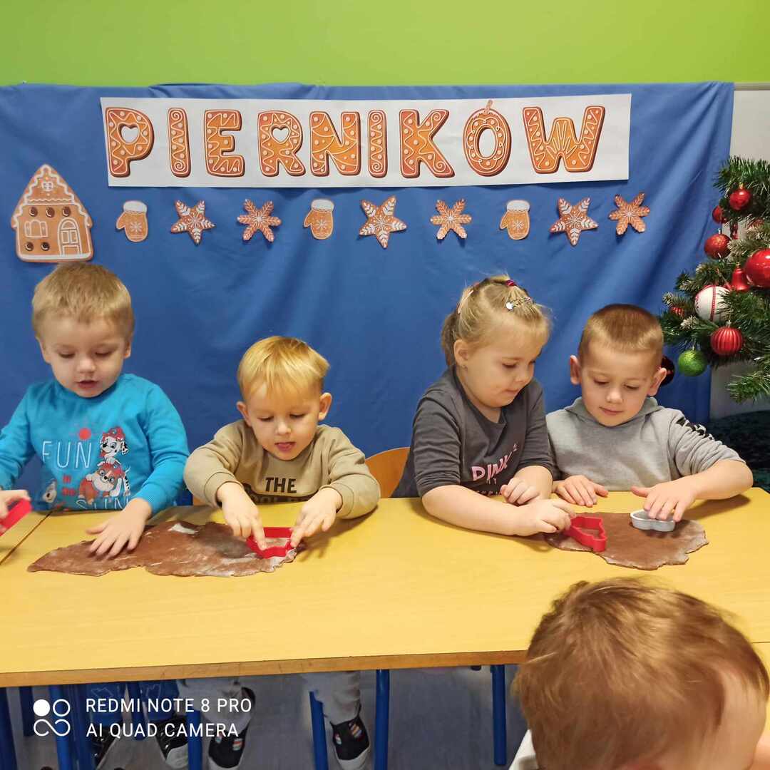 14 grudnia dzieci z naszego przedszkola, zgodnie z przedświąteczną tradycją upiekły pyszne pierniczki. Z pomocą pań praca z przygotowaniem wypieków szła sprawnie i bez trudu. Wszystkim podobało się wykrawanie przeróżnych kształtów – choinek, gwiazdek, bałwanków, aniołków, przy pomocy foremek. Następnie słodkie ciasteczka piekły się w przedszkolnej kuchni. Wspaniały zapach pierniczków wszystkich wprawił w świąteczny nastrój. Po upieczeniu, dzieci przystąpiły do ich dekorowania barwnymi posypkami. Zabawa była doskonała a pierniczki wyszły przepiękne oraz smaczne.