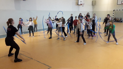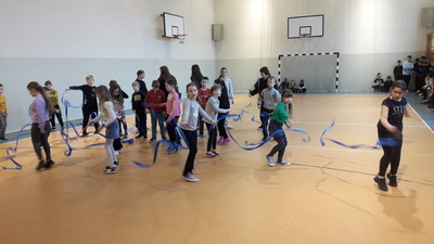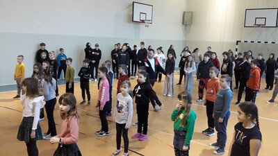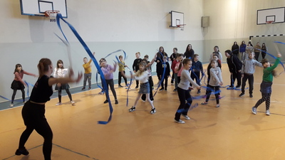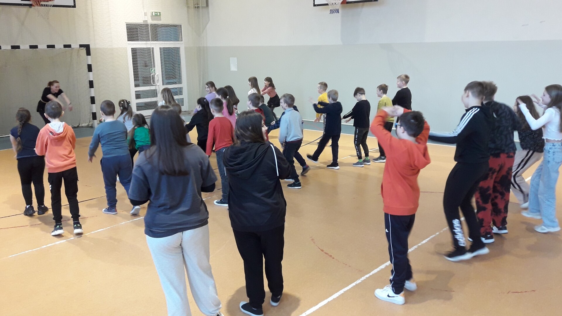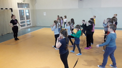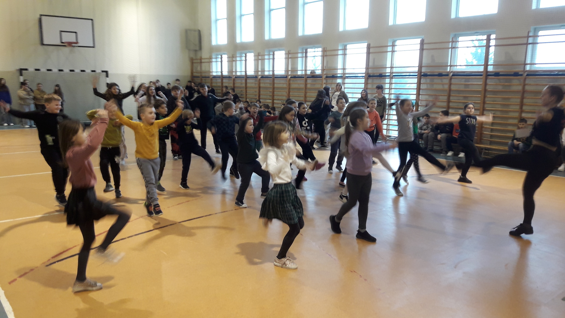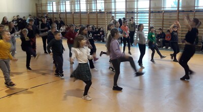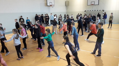 Zacytowane powyżej słowa piosenki zespołu Golec uOrkiestra mogłyby być mottem uczestników warsztatów tanecznych, które 29 lutego odbyły się w naszej szkole. W sali gimnastycznej zgromadzili się uczniowie wszystkich klas, żeby pod okiem instruktorki z artystycznej grupy tanecznej Skakanka- DANCE poćwiczyć rytmiczne podskoki. Największym entuzjazmem i, jak się z czasem okazało, kondycją wykazali się uczniowie klas I-III i grupka dziewczyn z klasy VI. Pozostali stanowili widownię i przyglądali się młodszym koleżankom i kolegom, którzy z pasją wykonywali układy choreograficzne.
