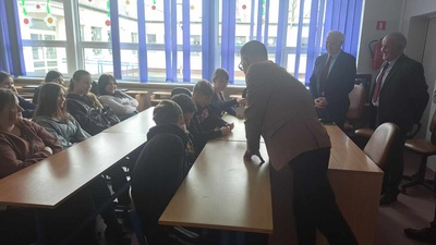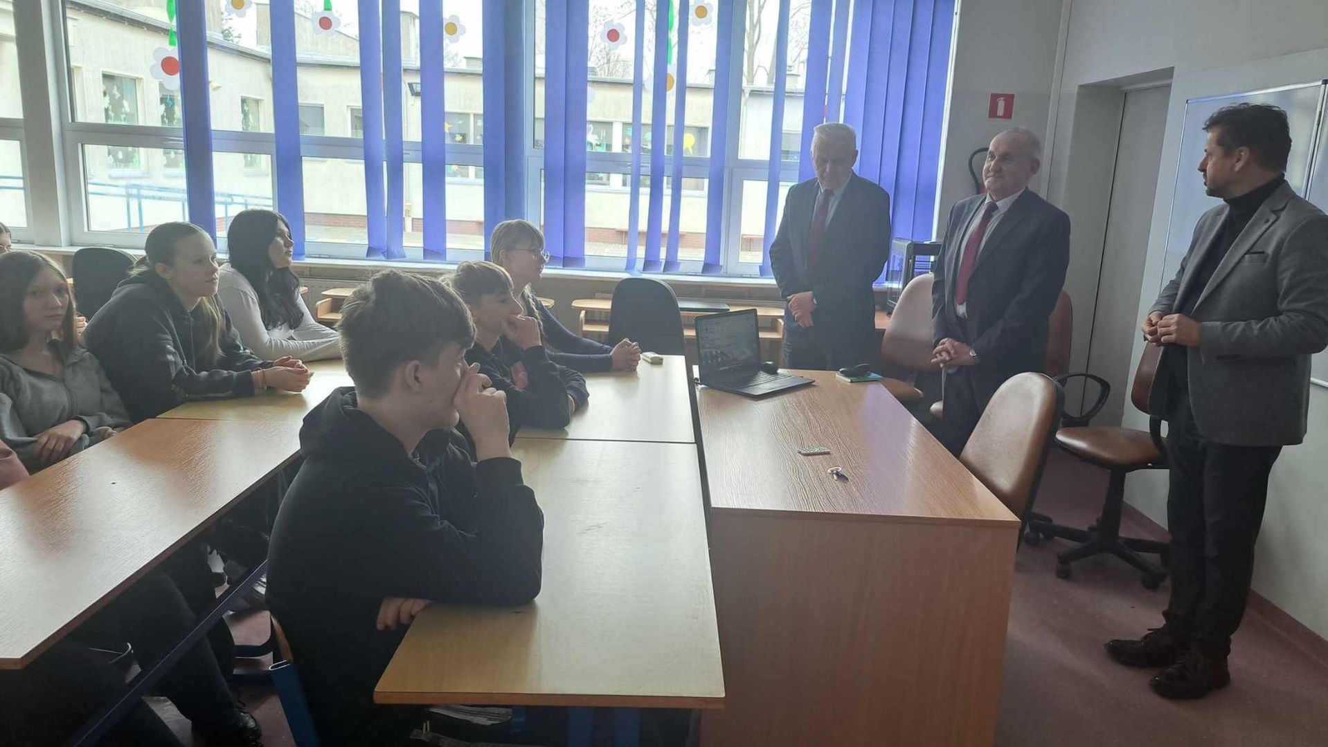 Za kilka lat dzisiejsi ósmoklasiści i ich młodsi koledzy będą podejmować własne decyzje, uczestnicząc w wyborach powszechnych, w tym w wyborach samorządowych. Aby przybliżyć młodzieży sposób funkcjonowania i rolę samorządu gminnego i samorządu powiatowego, zorganizowano spotkanie uczniów klas VII i VIII z osobami pełniącymi ważne funkcje w samorządzie naszej gminy. Naszymi gośćmi byli: Mirosław Paterczyk- Wójt Gminy Kotlin, Czesław Moch – Przewodniczący Rady Gminy, Hieronim Adamski – Przewodniczący Komisji Planu Gospodarczego, Budżetu i Finansów oraz Michał Urbaniak – Sekretarz Gminy, radny Rady Powiatu Jarocińskiego. Prelegenci przedstawili zadania samorządów i ich rolę w życiu społecznym.