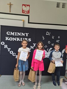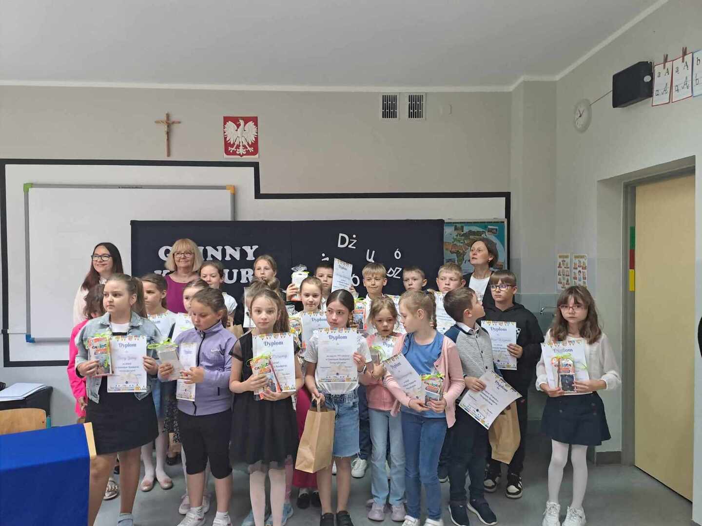 4 czerwca w Szkole Podstawowej im. Kornela Makuszyńskiego w Woli Książęcej odbył się Gminny Konkurs Ortograficzny klas II i III, w którym brali udział nasi uczniowie: Weronika Frątczak i Liliana Mikołajczak z klasy II oraz Wojciech Michalak i Szymon Woźniak z klasy III. Weronika Frątczak zajęła III miejsce w kategorii klas drugich. Wszystkim uczestnikom serdecznie gratulujemy.