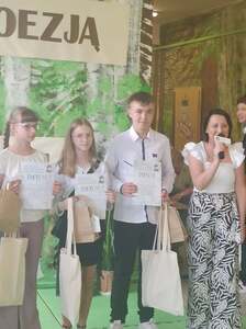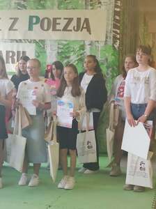 18 maja 2024 roku odbyło się XII Spotkanie z Poezją Marii Konopnickiej w Szkole Podstawowej w Kotlinie. Naszą szkołę godnie reprezentowali uczniowie z klasy II i VII. W konkursie recytatorskim w kategorii klas I-III laureatką została Weronika Frątczak, recytując utwór „Pranie”. W Konkursie Recytatorskim Poezji w języku angielskim, nagrodę specjalną otrzymał Dawid Hansch. Natomiast w Wojewódzkim Konkursie Plastycznym wyróżnienie zdobył uczeń klasy II Krystian Dorsz, a nagrodę specjalną uczennica klasy VII Katarzyna Michalak. Gratulujemy i życzymy dalszych sukcesów