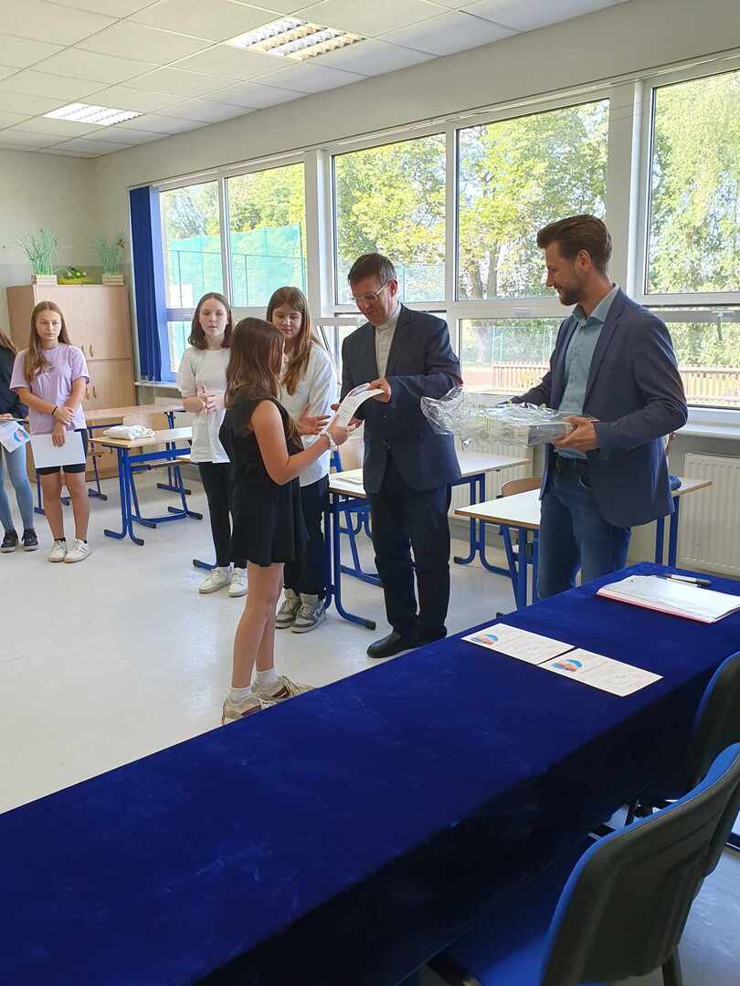 Wzięło w nim udział dziesięcioro przedstawicieli szkół podstawowych z terenu gminy Kotlin. Honorowym gościem i fundatorem nagród był p. Paweł Wyremblewski - Wójt Gminy Kotlin, za co składamy serdeczne podziękowania.