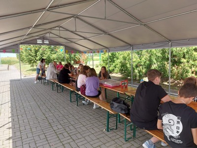 Po powrocie do szkoły wszystkim smakowały ciasta i smażone nad ogniskiem kiełbaski. Nie od dziś wiadomo, że aktywność fizyczna i uprawianie choćby amatorskiego sportu dobrze wpływa na apetyt.