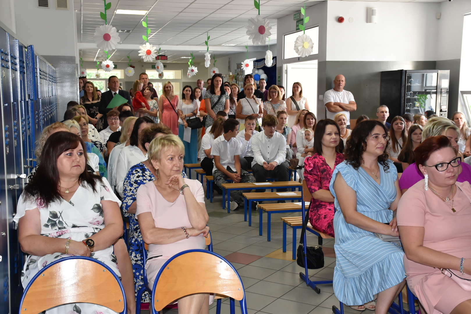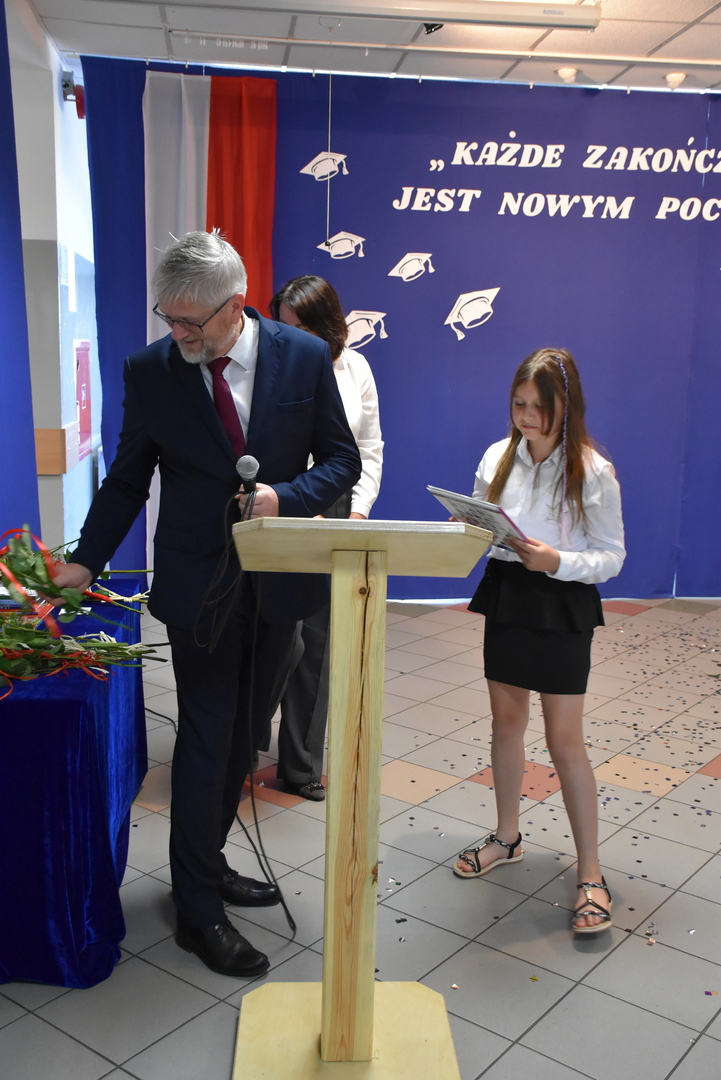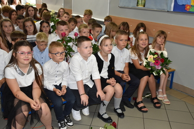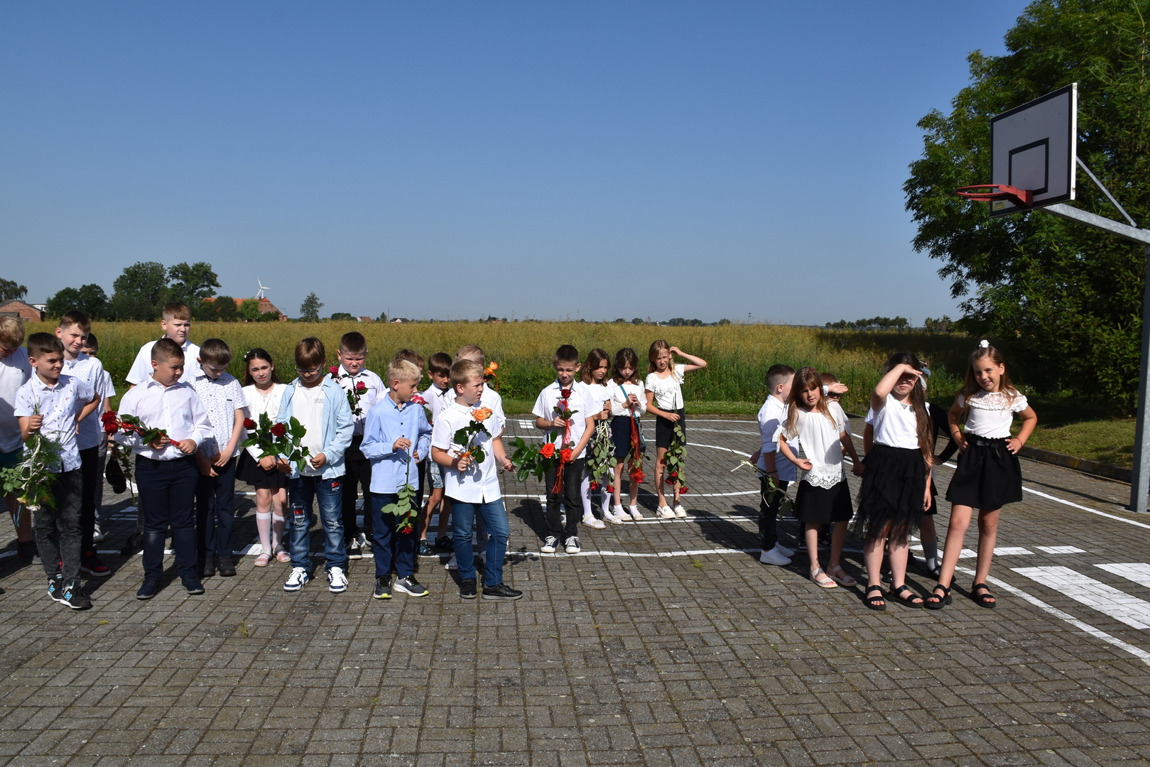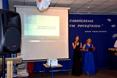 Jednak zanim uczniowie klasy VIII odebrali swoje ostatnie w szkole podstawowej świadectwa, przygotowali dla szkolnej społeczności wzruszającą część artystyczną. Rozpoczęła się od bezbłędnego odtańczenia poloneza, później obejrzeliśmy prezentację multimedialną składającą się ze zdjęć i filmików, na których uwieczniono klasowe życie kolejnego rocznika naszych absolwentów. Później podziękowali swojemu wychowawcy, nauczycielom, pracownikom szkoły i, przede wszystkim swoim rodzicom za wsparcie i życzliwość. Następnie z rąk dyrektora szkoły- Romana Stoleckiego otrzymali swoje świadectwa, zasłużone nagrody i dyplomy.