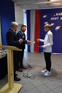 Podziękowania, tym razem z rąk dyrektora, odebrały również osoby i organizacje, które wspierają naszą szkołę, pomagają w realizacji jej przedsięwzięć i w ten sposób mają też wpływ na jej pozytywny wizerunek.