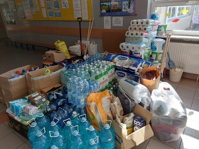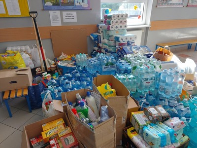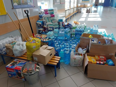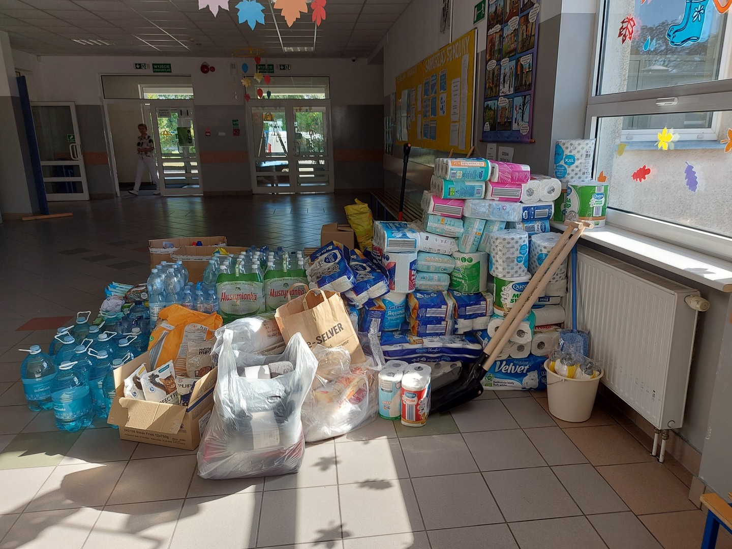 15 września 2024- tę datę zapamiętają wszyscy mieszkańcy południowo- zachodniej Polski. Tego dnia życie wielu z nich drastycznie się zmieniło. Stracili cały swój dorobek. Ze współczuciem śledziliśmy ich tragedię w mediach. I kiedy tylko pojawiła się inicjatywa lokalnej straży pożarnej, by rozpocząć zbiórkę na rzecz poszkodowanych, szkolna społeczność włączyła się w tę akcję. Na szkolnym holu zgromadziliśmy to, co zostało wypunktowane w apelu straży: wodę, żywność, środki czystości, koce itd. Wkrótce pojawiły się też łopaty, mopy, wiadra i inne przedmioty, które wkrótce trafią do rąk potrzebujących.