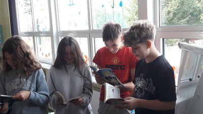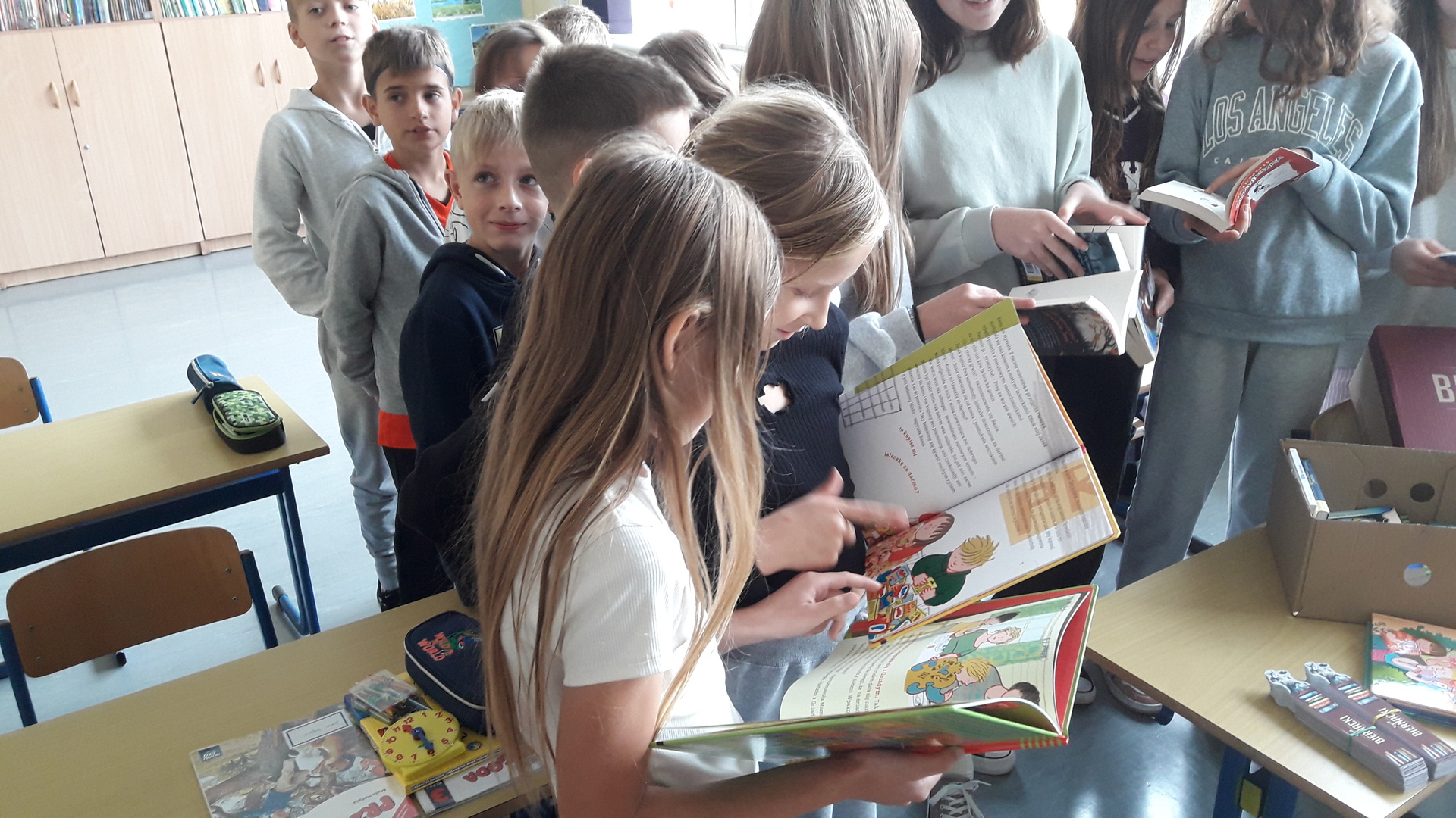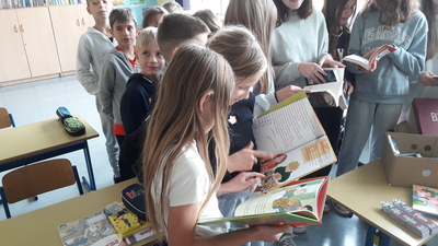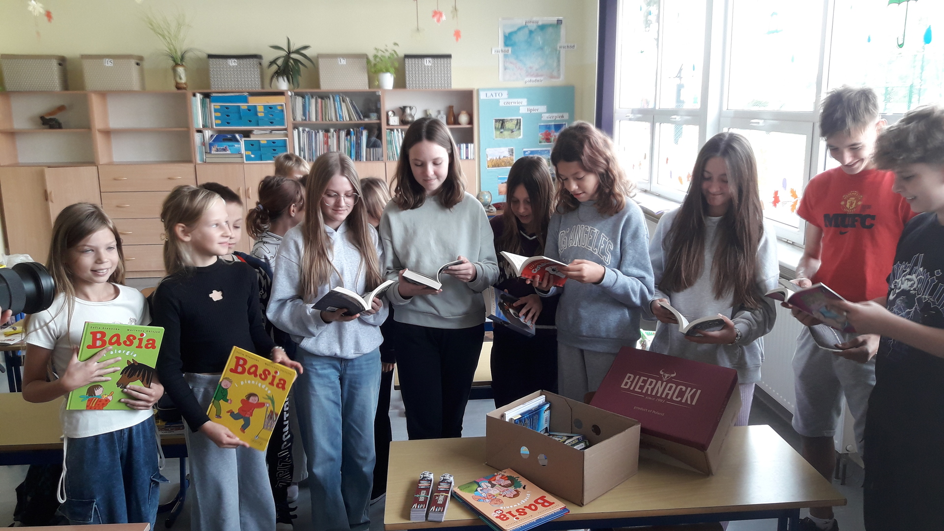 Dobra wiadomość dla tych, którzy nadchodzące długie jesienne wieczory lubią spędzać czytając ciekawe książki. 23 września przedstawicielki firmy ZPM Biernacki sp.z o.o. przekazały na ręce naszej bibliotekarki nowiutkie, pachnące nowością egzemplarze. Po otworzeniu paczki jej zawartością od razu zainteresowali się trzecioklasiści i uczniowie starszych klas. Młodsze wielbicielki literatury sięgnęły po książki z serii Basia i …, które w przystępny sposób poruszają temat pieniędzy czy alergii. Natomiast starsi czytelnicy przeglądali książki należące do nurtu modnych młodzieżowych thrillerów.