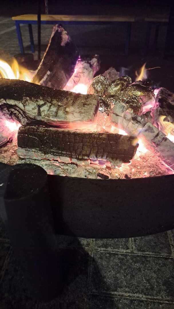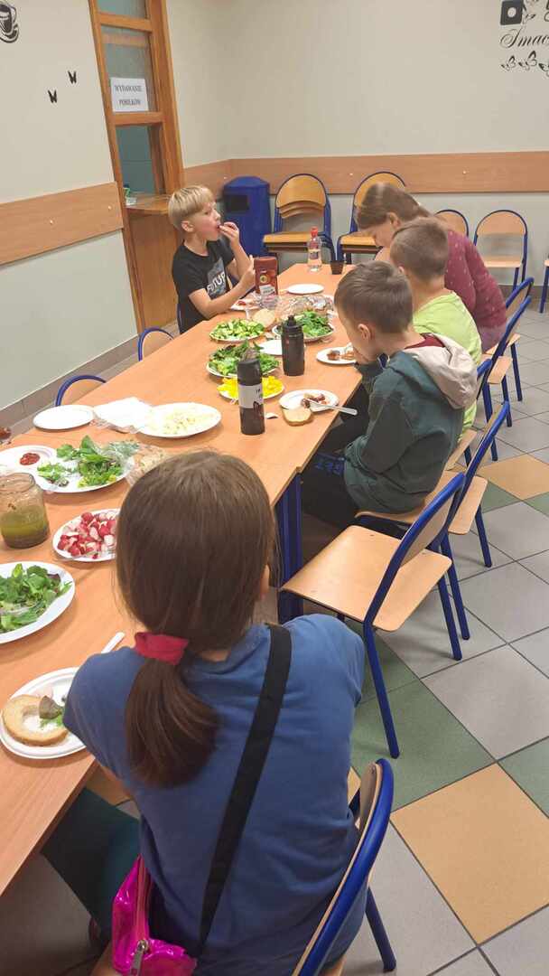 Po zabawie nadszedł czas na kolację – wspólne ognisko z pieczeniem kiełbasek i ziemniaków oraz własnoręcznie przygotowanymi sałatkami.