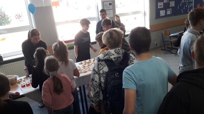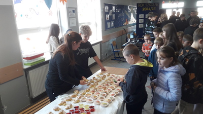Po uczcie dla duszy nadszedł moment na strawę dla ciała. Przedstawiciele SU zaprosili wszystkich uczniów do szkolnej cukierni, gdzie można było zaopatrzyć się w muffinki, rogaliki, deserki z galaretki i owoców.