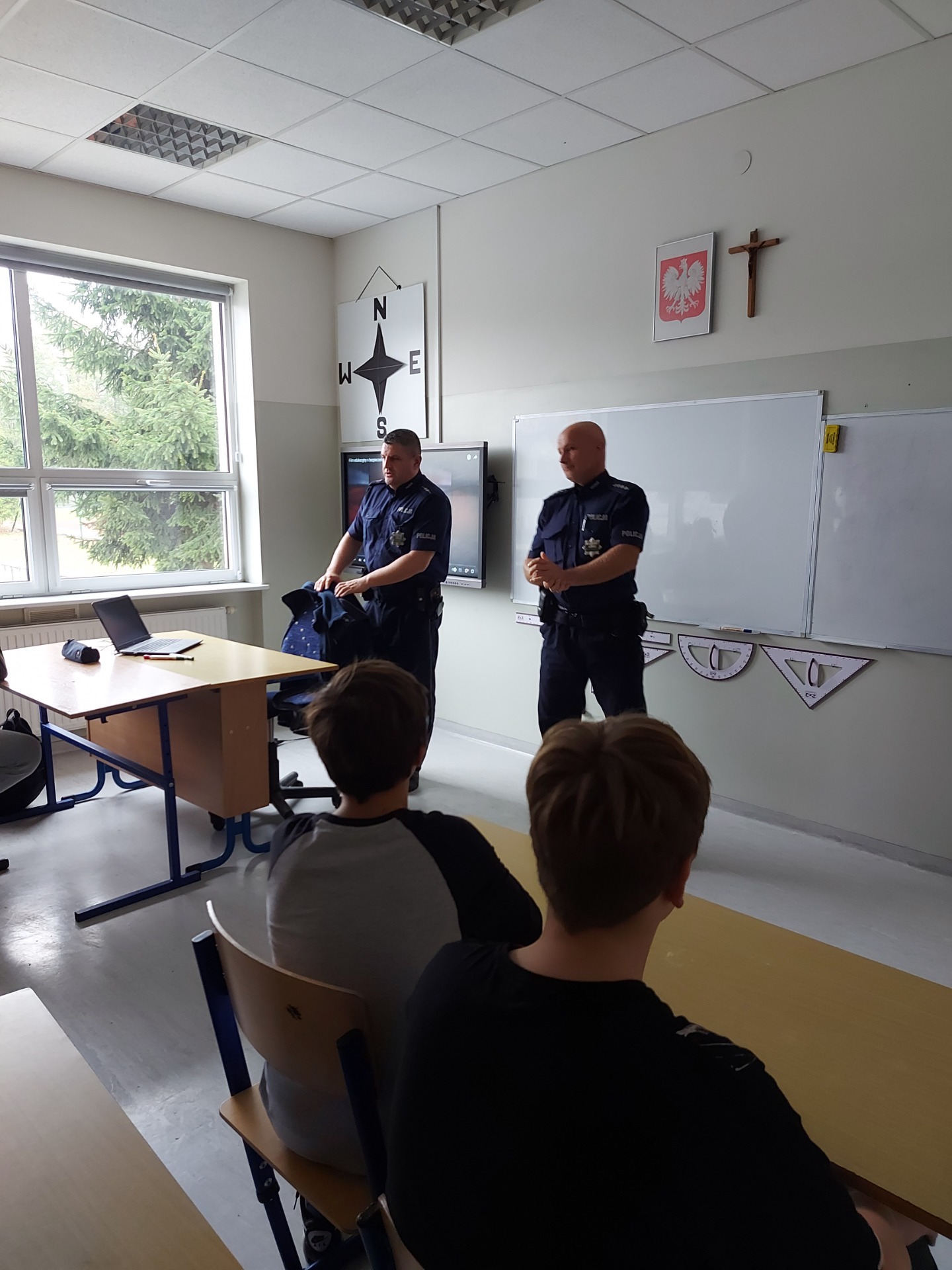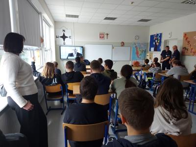 Policjanci nie negowali, oczywiście, zalet dostępu do sieci, ale jednocześnie w bardzo stanowczy sposób omówili zagrożenia, jakie czyhają na użytkowników Internetu, w tym mediów społecznościowych. Powołując się na zawodowe doświadczenie policjanci zreferowali młodym słuchaczom niebezpieczeństwa, które może na nich sprowadzić nieostrożne korzystanie z tzw. social mediów np. zbytnia ufność w nawiązywanie relacji ze „znajomymi” z Internetu, niefrasobliwość w umieszczaniu informacji o życiu prywatnym na, wydawałoby się, bezpiecznych kontach. Przestrzegli też przed czymś, co może w pierwszej chwili wydać się żartem, rozrywką, czyli fotografowaniem, nagrywaniem koleżanek, kolegów i puszczaniem uzyskanych w ten sposób materiałów w internetowy obieg, a także publikowaniem obraźliwych komentarzy czy postów. A w sieci kompromitujące materiały pędzą lotem błyskawicy do kolejnych odbiorców.