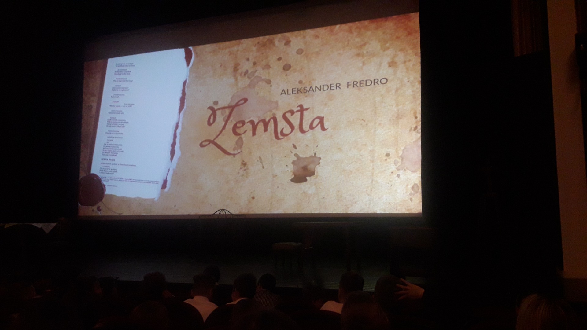 Realizatorzy przedstawienia poważnie podeszli do swojego zadania. Aktorzy świetnie oddali charaktery Fredrowskich postaci. Uczniom podobał się zwłaszcza Papkin –lew Północy, jak sam o sobie mówi naczelny samochwała w komedii oraz Cześnik, nie bez powodu noszący nazwisko Raptusiewicz. Siódmoklasiści, którzy niedawno poznali „Zemstę”, zaraz zauważyli, że wizja reżysera trochę odbiegła od ich wyobrażenia o bohaterach sztuki, zwłaszcza o swobodnym zachowaniu Podstoliny wobec Wacława. To dobry znak, że widzowie uważnie obserwują to, co dzieje się na scenie i potrafią wyrazić swoją opinię.
