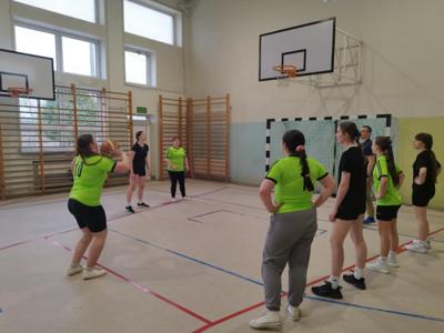 Następnie swoje umiejętności zaprezentowały zawodniczki z klas VII-VIII. Tym razem w szranki stanęły dziewczyny z naszej limonkowej drużyny. Niesione własnymi ambicjami i dopingiem publiczności dołożyły wszelkich starań, by pokonać rywalki i wygrać w swojej kategorii. Wyniki tej rozgrywki przedstawiają się następująco: