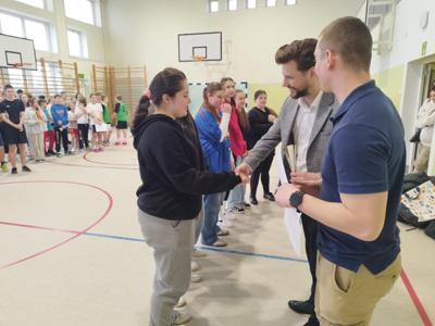 Nad przebiegiem turnieju czuwał gminny koordynator sportu Adrian Włodarczyk, nagrody wręczali wójt gminy Kotlin – Paweł Wyremblewski i dyrektor naszej szkoły Roman Stolecki.