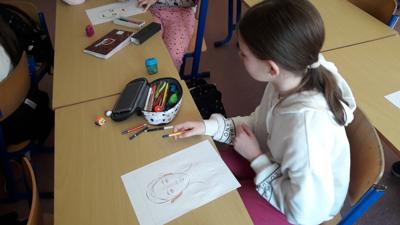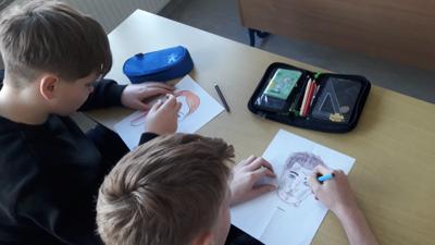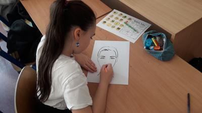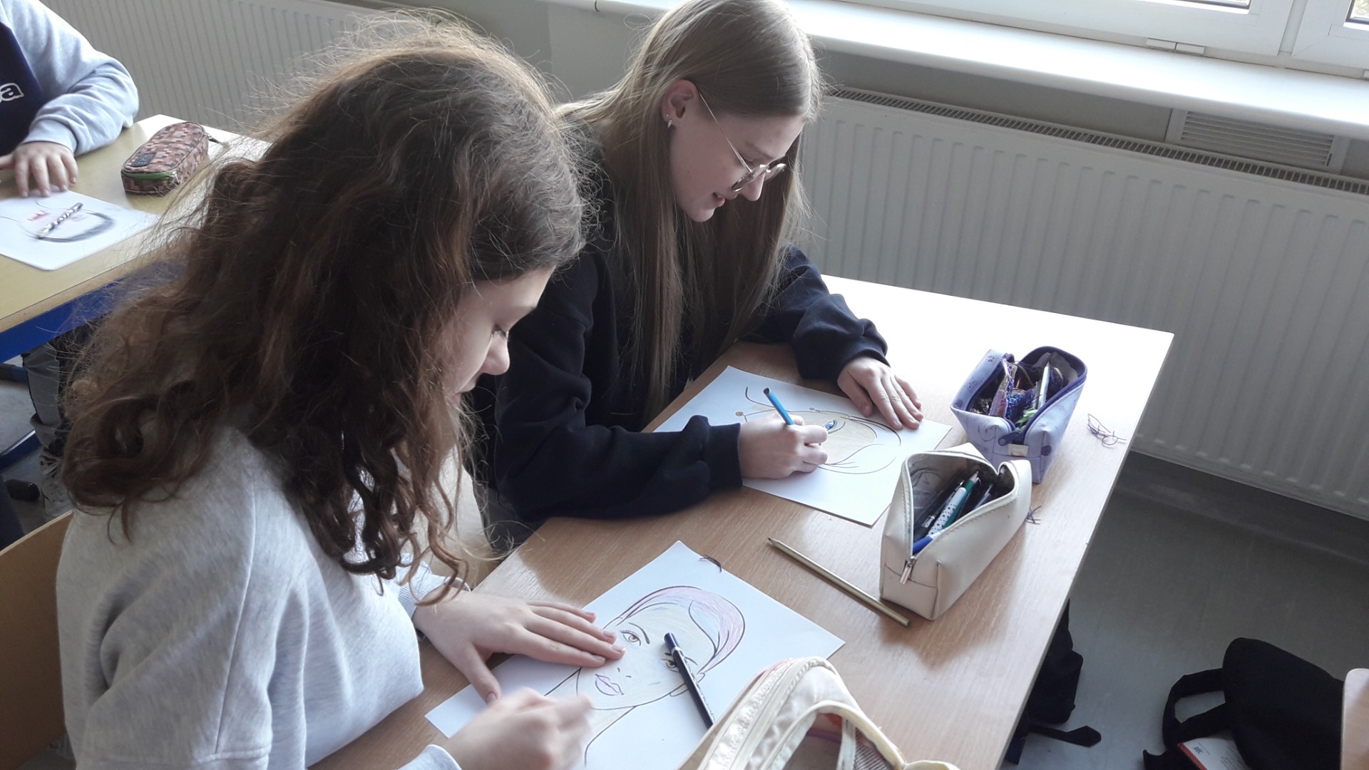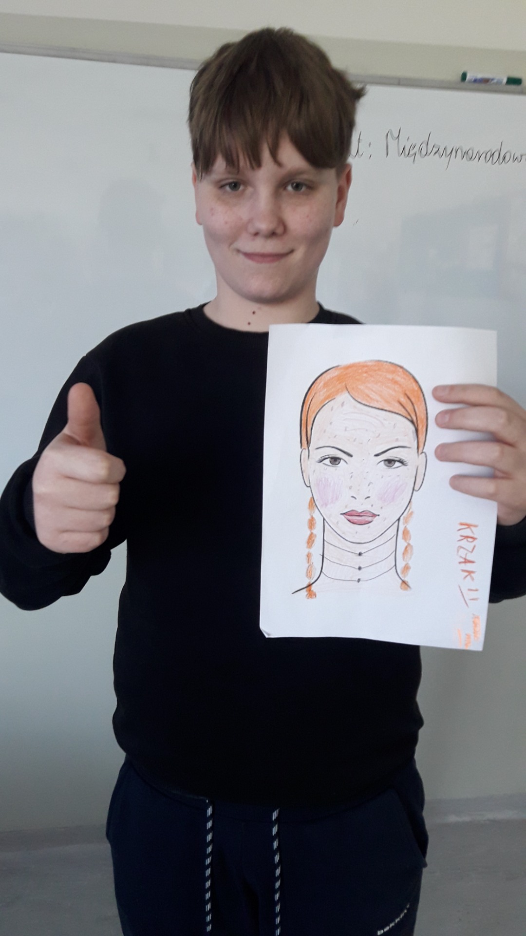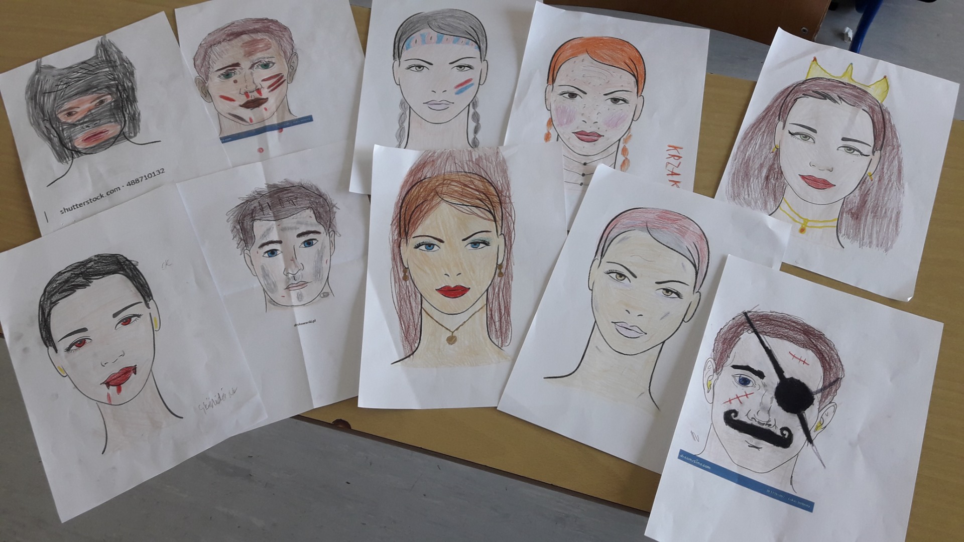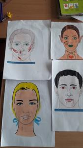 Najbardziej angażujące okazało się zadanie praktyczne. Otóż każdy uczeń mógł wcielić się w rolę charakteryzatora i opracować sceniczny wizerunek dla…. wybranej przez siebie papierowej aktorki lub aktora. W galerii aktorskich makijaży pojawiły się między innymi propozycje dla odtwórców ról: młodej Indianki, królowej Jadwigi, wampirów, statystów zaatakowanych przez dinozaura w filmie „Park Jurajski”, piratów, mitologicznej bogini Afrodyty, elfa, spracowanej chłopki i jej męża z dziewiętnastowiecznej wsi i wiele innych.