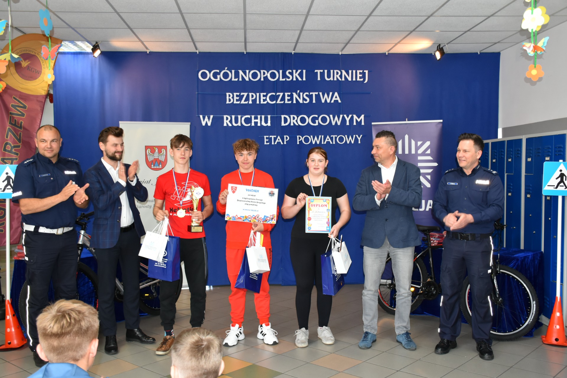 Tym razem uczestnicy zmierzyli się nie tylko z testem wiedzy o ruchu drogowym, ale również konkurencjami praktycznymi w Miasteczku Ruchu Drogowego, torem przeszkód na rowerze oraz zadaniami z zakresu pierwszej pomocy.