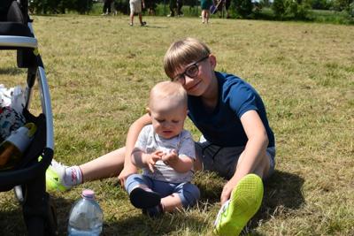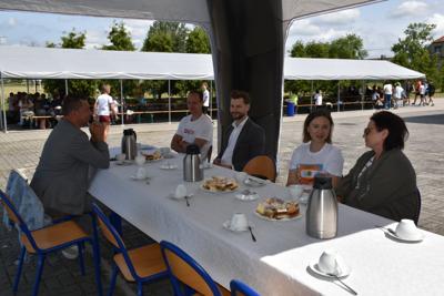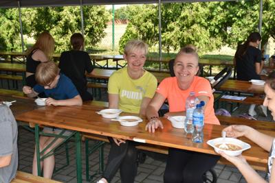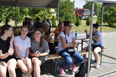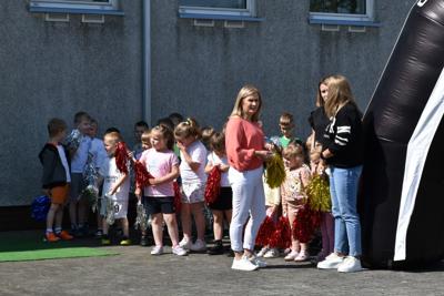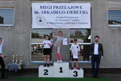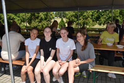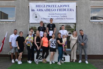 Na końcu odbył się bieg, który wywołał nie mniejszy entuzjazm niż wcześniejsze, bowiem na starcie stanęli absolwenci szkoły i mamy naszych uczniów. Cóż, młodzież, która niedawno opuściła mury naszej szkoły, nieco wyprzedziła przedstawicielki rodziców, ale dobiegające na metę mamy były witane gorącym dopingiem i oklaskami. Brawo dla nich!W tym biegu najszybszy był Adam Jarzębski, drugi przybiegł Szymon Świerzewski, trzeci- Bogusz Goździela.