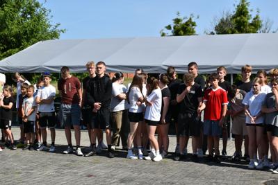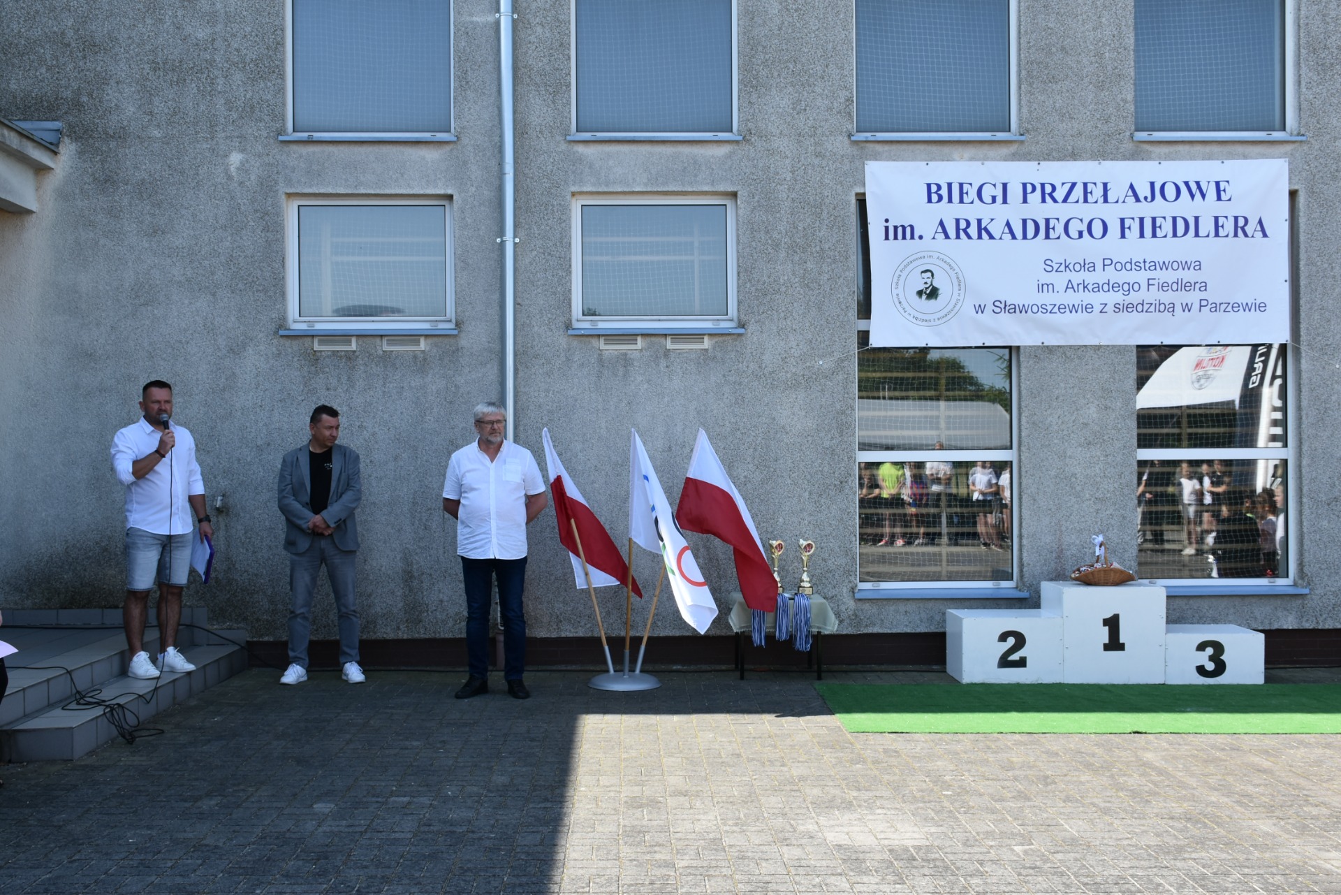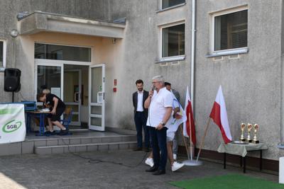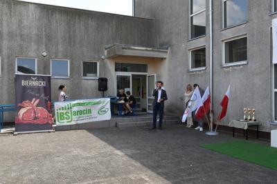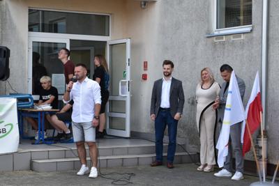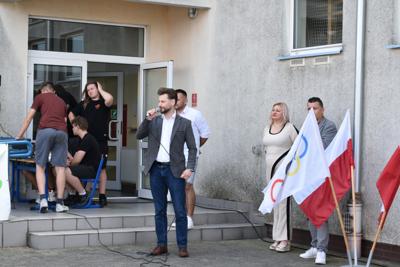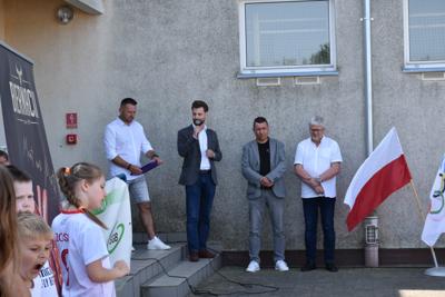 Po części oficjalnej, czyli przywitaniu gości przez dyrektora szkoły - Romana Stoleckiego, odśpiewaniu hymnu i złożeniu kwiatów przy obelisku upamiętniającym patrona szkoły, głos zabrał koordynator biegów- Michał Rakoczy, który omówił harmonogram biegów.