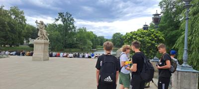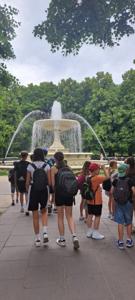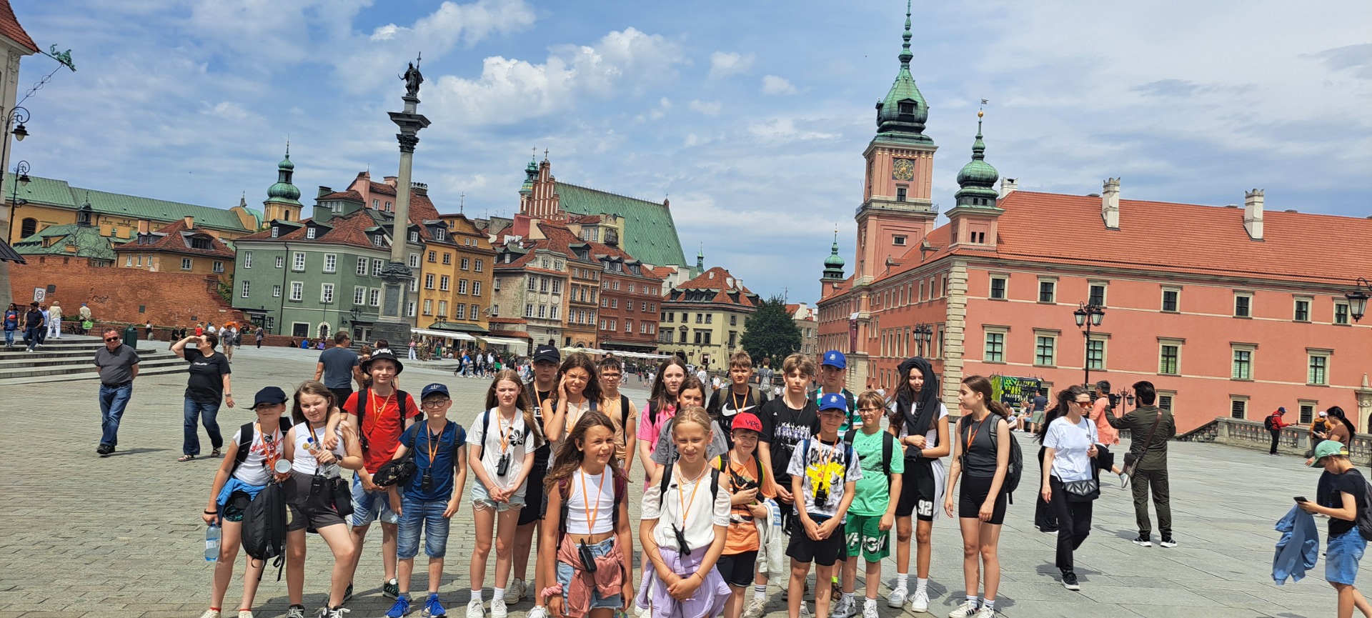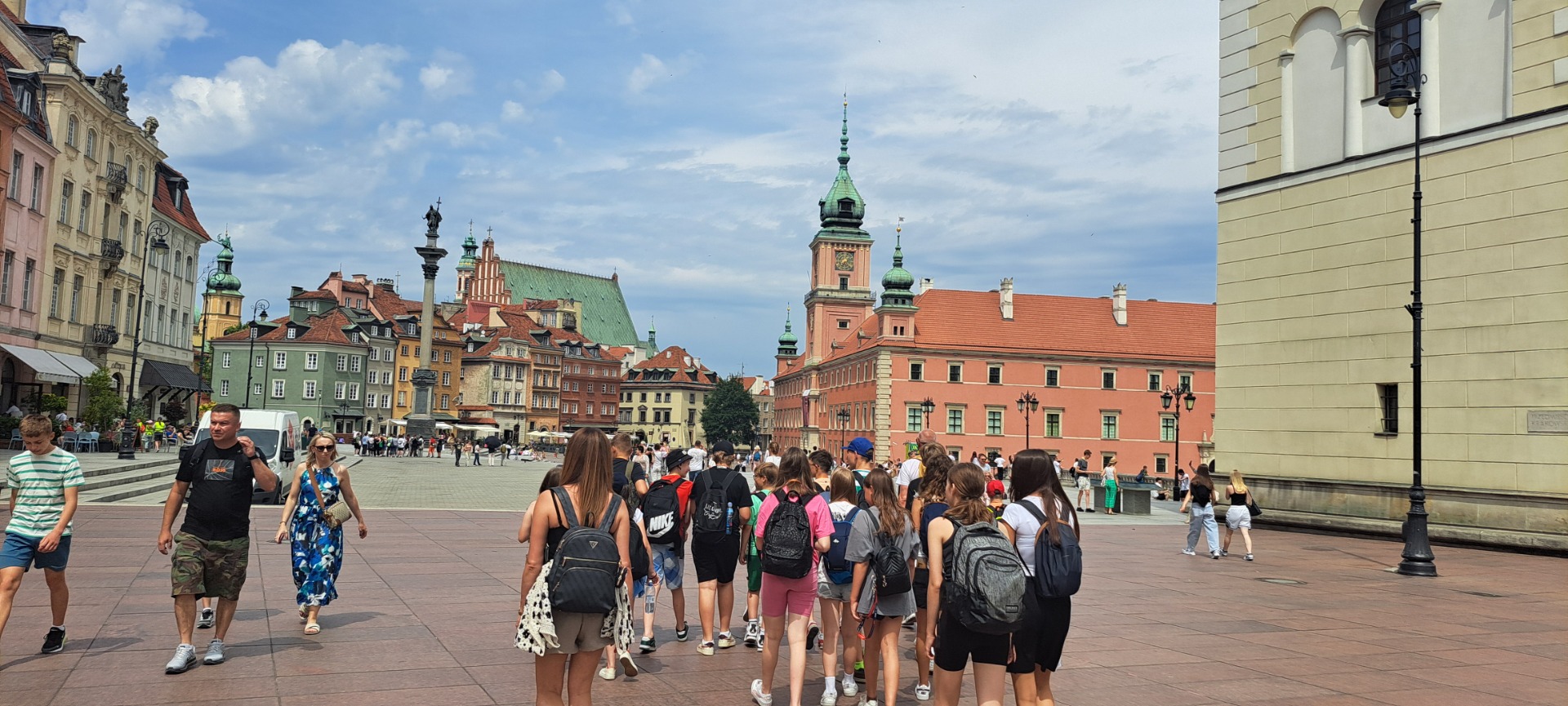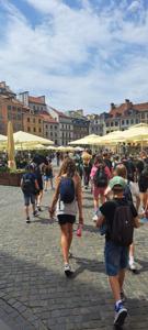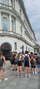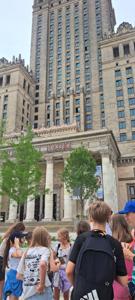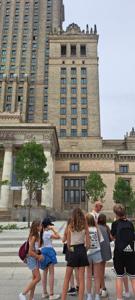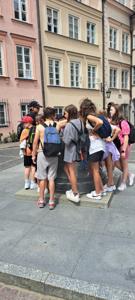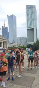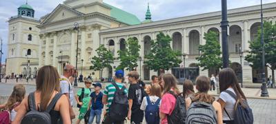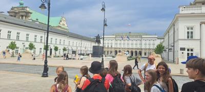 Pierwszego dnia uczniowie zwiedzili Warszawską Starówkę i spacerowali ulicą Krakowskie Przedmieście, gdzie znajduje się Pałac Prezydencki - oficjalna siedziba Prezydenta RP.