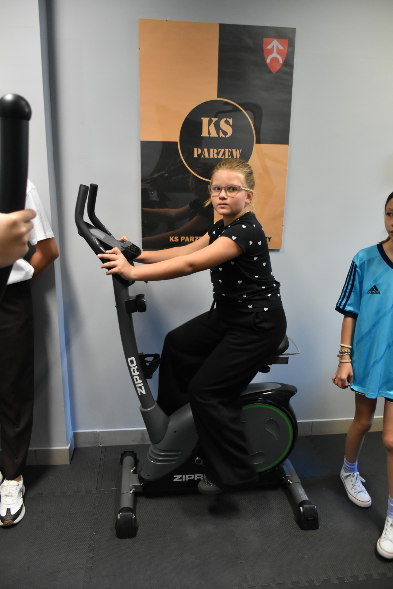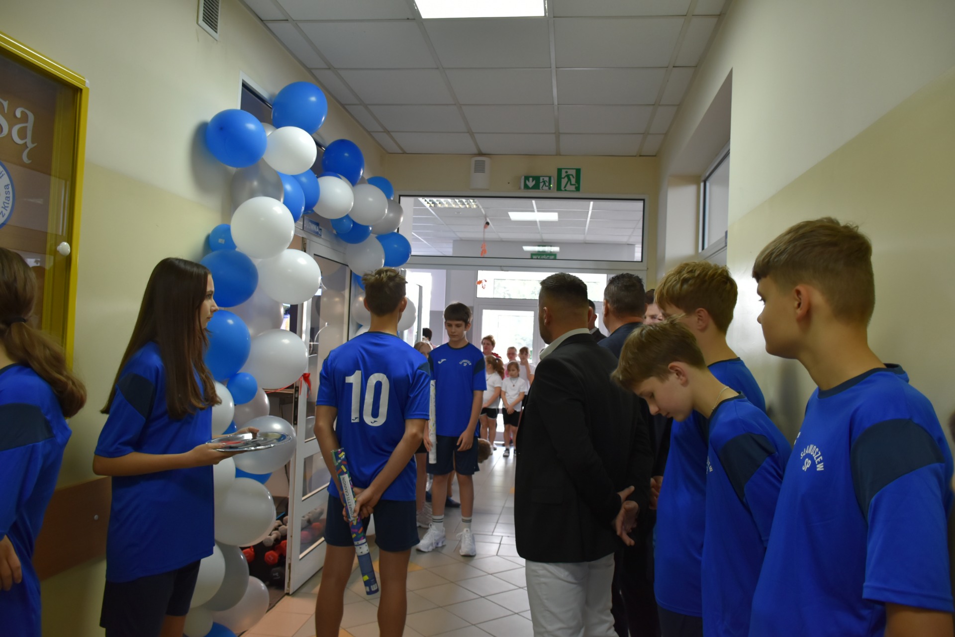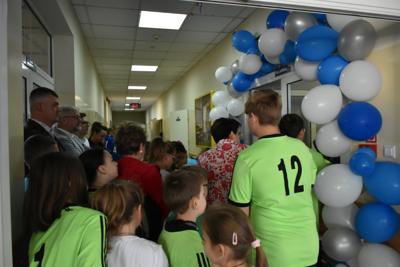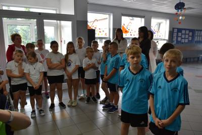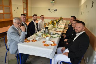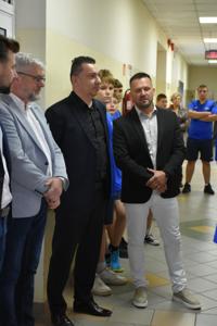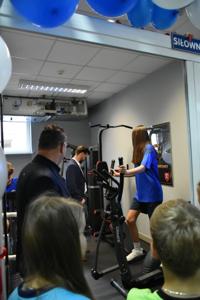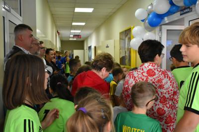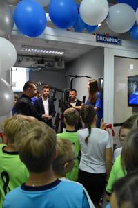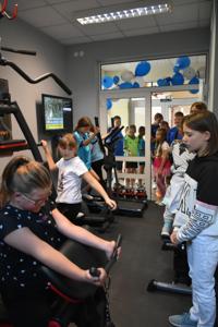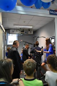 Łukasz Ratajczak podkreślił, że nasi uczniowie będą korzystać z sali bez wymaganych gdzie indziej karnetów. Po wypowiedziach gości głos zabrał nasz nauczyciel wychowania fizycznego Michał Rakoczy, dla którego otwarta właśnie siłownia okazała się spełnionym marzeniem. Z racji pracy i zainteresowań dbałość o kondycję fizyczną dzieci i młodzieżyjest dla niego priorytetem. Podziękował również wszystkim zaangażowanym w to przedsięwzięcie osobom i organizacjom, w tym obecnej na uroczystości Monice Walczak, przewodniczącej Koła Gospodyń Wiejskich w Parzewie.