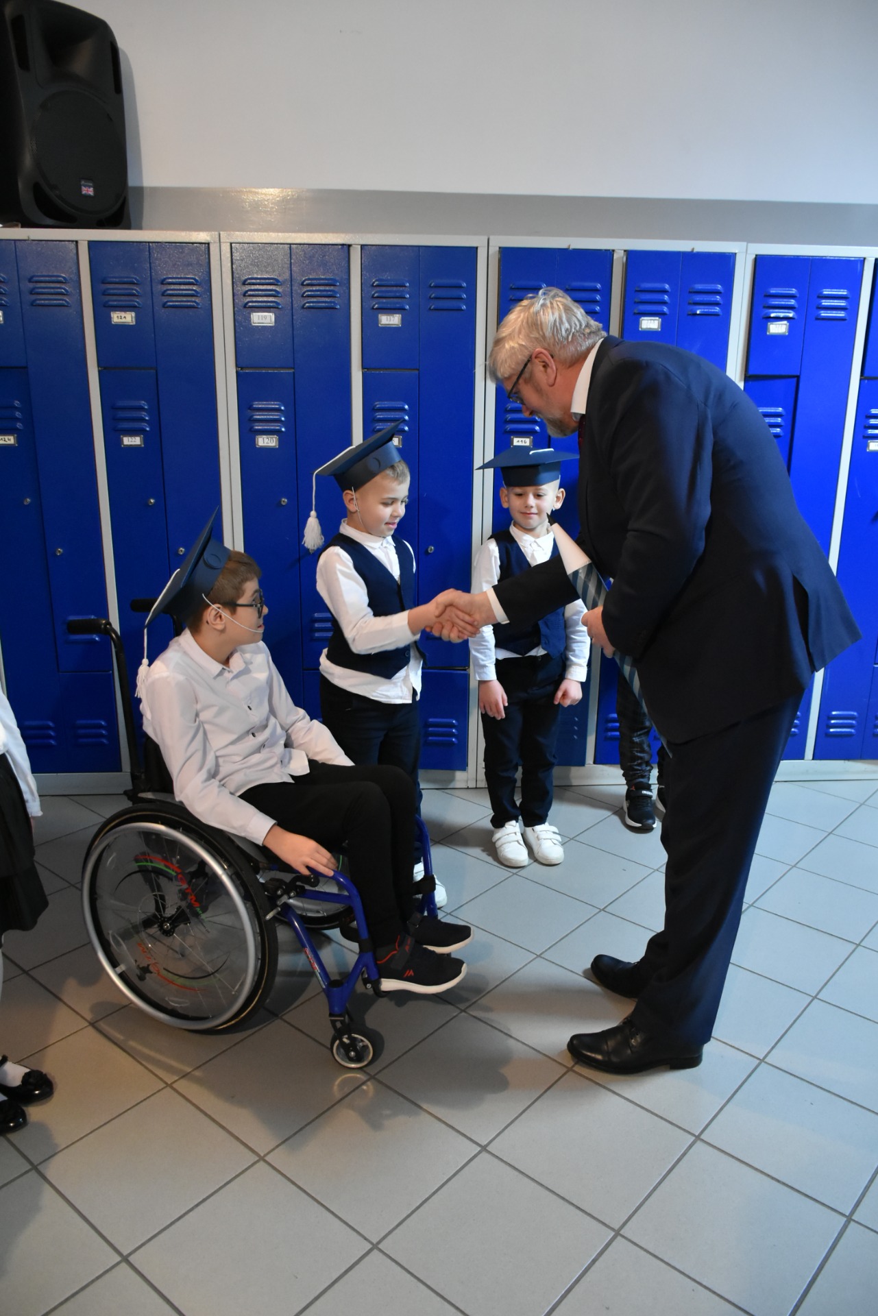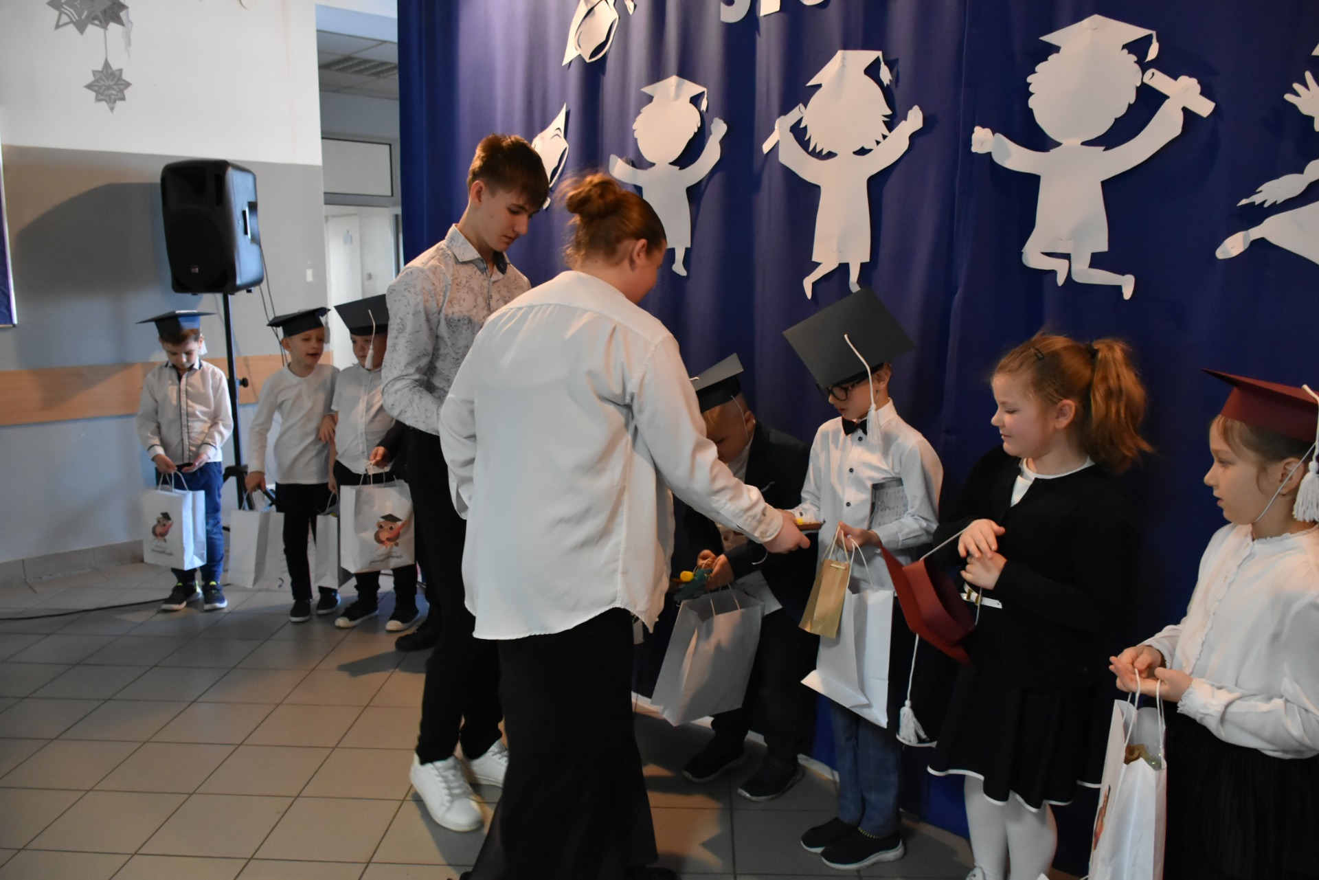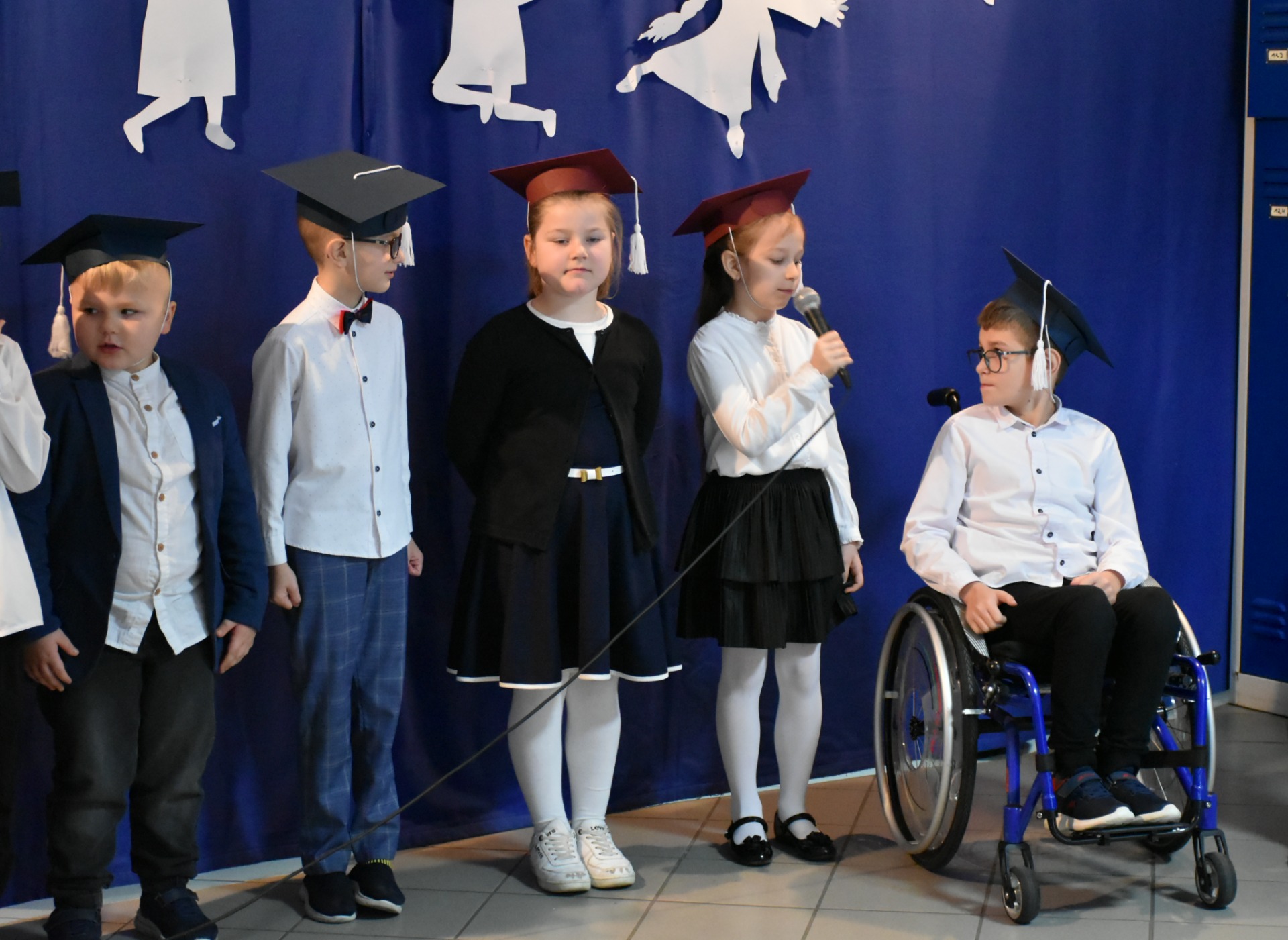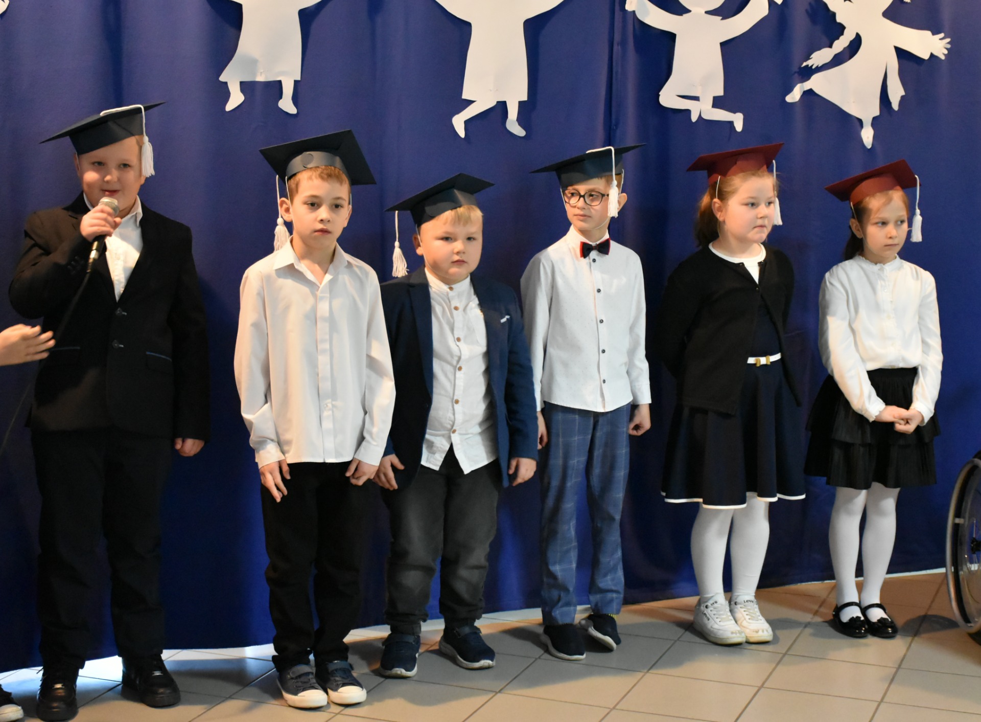 Po apelu poświęconym Patronowi przewodniczący SU oddał głos pierwszoklasistom. Eleganccy i bardzo przejęci pierwszy raz zaprezentowali się na forum szkoły. Występowi najmłodszych uczniów, składającemu się z wierszy, piosenek przyglądali się starsi koledzy, nauczyciele i, oczywiście, wzruszeni rodzice.