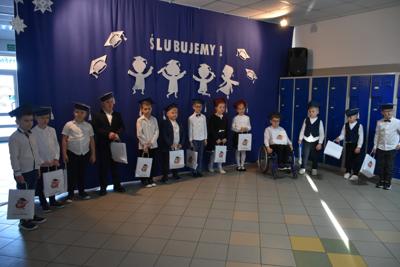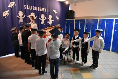 Po występie artystycznym nadszedł czas na ślubowanie na sztandar szkoły. A chwilę później dyrektor szkoły dokonał pasowania każdego pierwszoklasisty na ucznia.