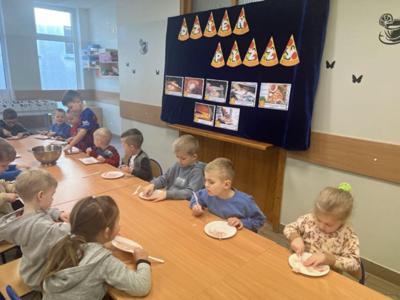 10 lutego przedszkolaki obchodziły Dzień Pizzy. Wielką frajdę sprawiły wszystkim same przygotowania: formowanie kulek z ciasta, smarowanie sosem pomidorowym, układanie wybranych składników, posypywanie serem. Kiedy wszystko było już gotowe, pizza powędrowała do pieca, aby się upiec....