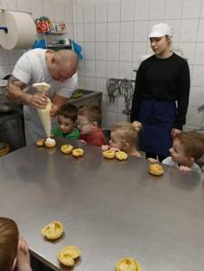 Z okazji Dnia Piekarza i Cukiernika -13 marca przedszkolaki wybrały się z wizyta do Cukierni „ Grzechu Warta”. Dzieci miały okazję zobaczyć jak powstają pyszne ciasta, torty i ciasteczka a także poznać tajniki pracy cukiernika od strony praktycznej. W ruch poszły więc wałki do ciasta...