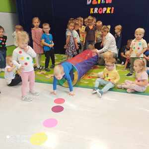 16 września obchodziliśmy Międzynarodowy Dzień Kropki. Celem tego święta jest wzbudzenie u dzieci kreatywności, pomysłowości i zachęcenie ich do tworzenia, działania. Dzień Kropki jest to dzień odwagi i zabawy. Tego dnia nasze zabawy wypełnione były kolorowymi kropkami.