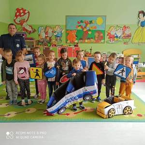 W ramach tematu ,,Bezpieczna droga do przedszkola" zaprosiliśmy do nas policjant