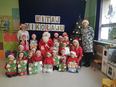 4 grudnia do naszego przedszkola zawitał wraz ze swoim reniferem Św. Mikołaj. Nasze przedszkolaki wyglądały w tym dniu jak małe elfy, a może raczej jak małe Mikołaje. Był to naprawdę niezwykły gość, który obdarował prezentami wszystkie dzieci. Za otrzymane prezenty dzieci podziękowały Mikołajowi piosenkami.