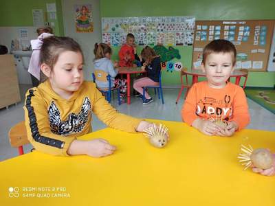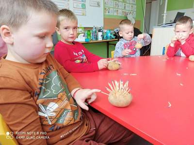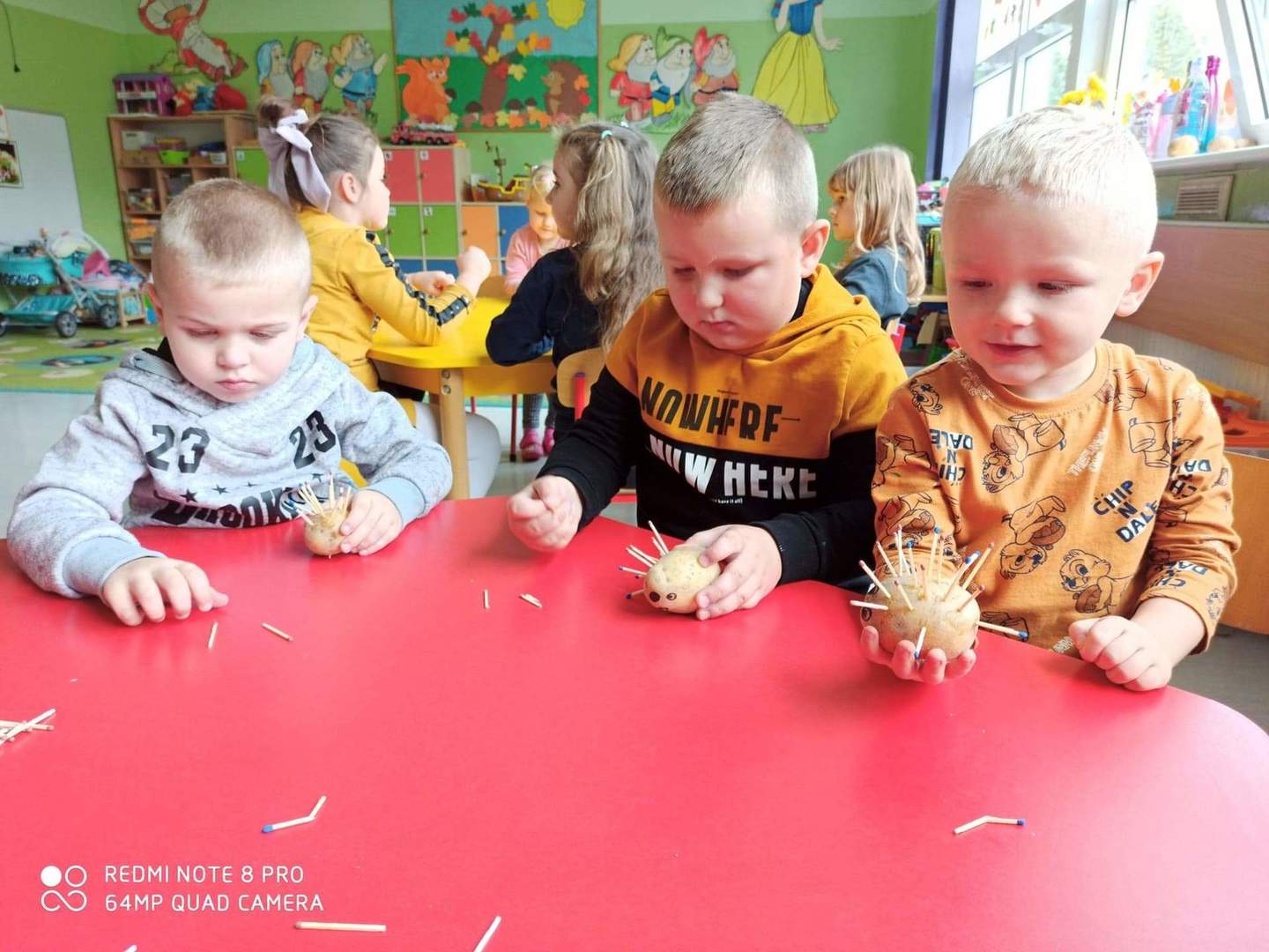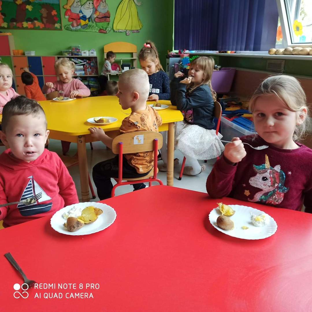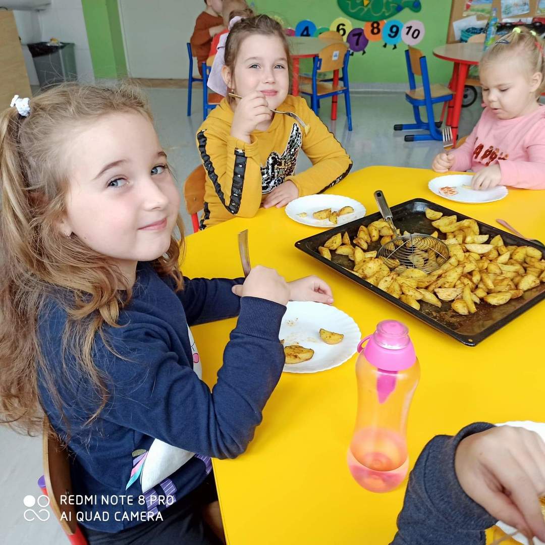 Jesień to czas zbioru ziemniaków, a przy tym świetna okazja do wspólnej zabawy i bliższego poznania tego warzywa. Z tej okazji obchodziliśmy w przedszkolu Święto Pieczonego Ziemniaka. Dzieci obejrzały film edukacyjny o ziemniaku, z którego dowiedziały się m.in. skąd pochodzi ziemniak oraz wykonały piękne, ziemniaczane jeżyki. Obowiązkowo na koniec przedszkolaki zjadły ze smakiem pieczone ziemniaki z ogniska oraz inne smakołyki przygotowane z ziemniaków.