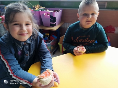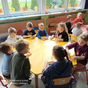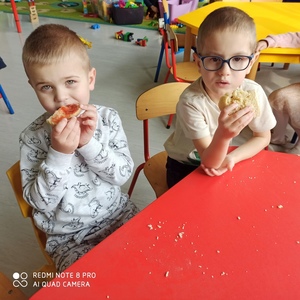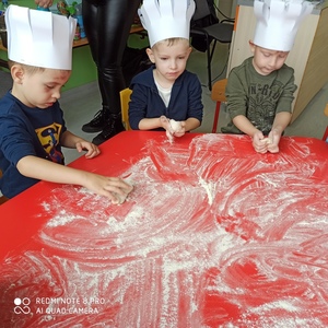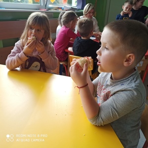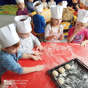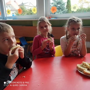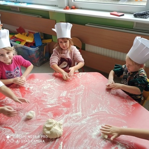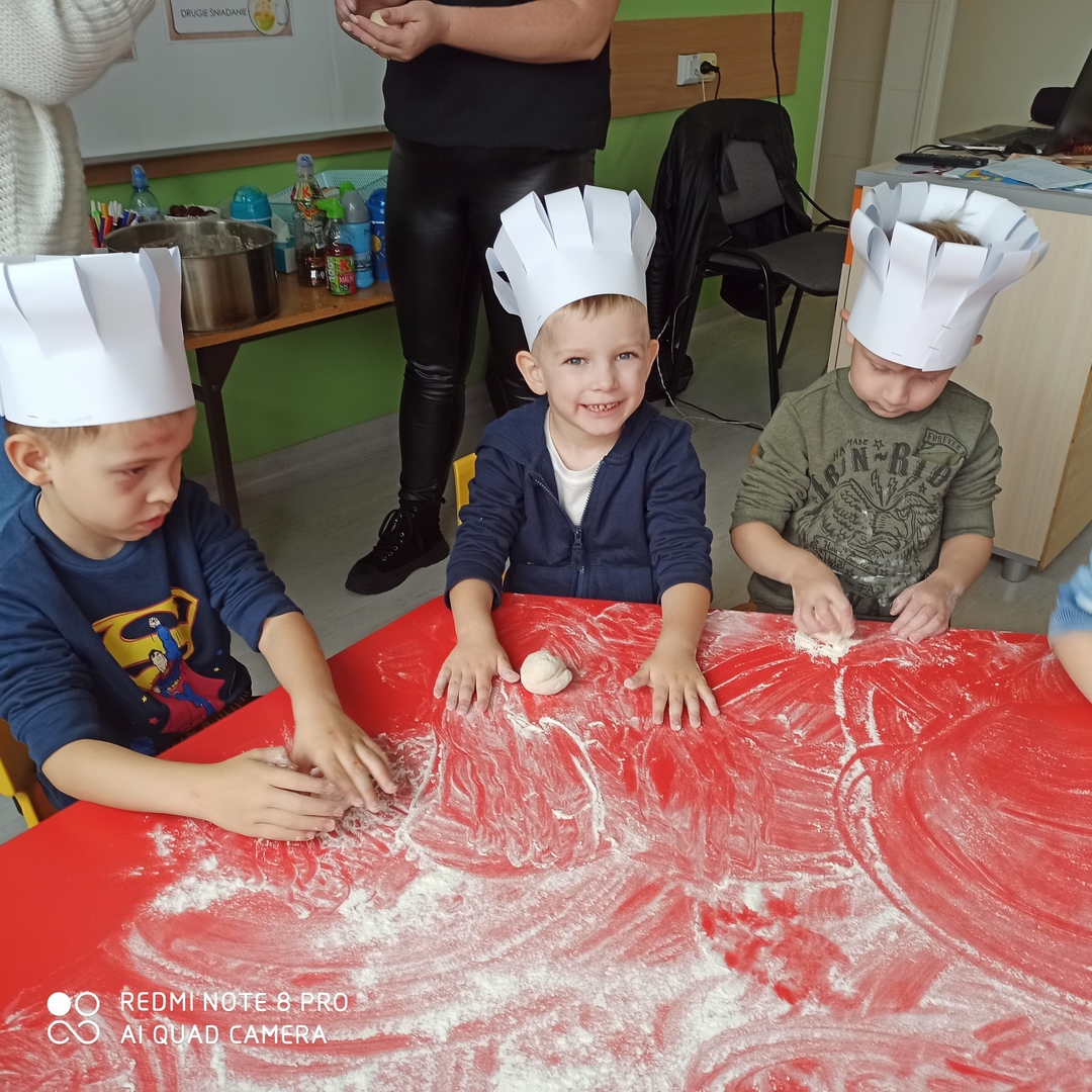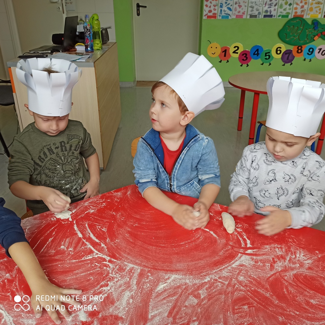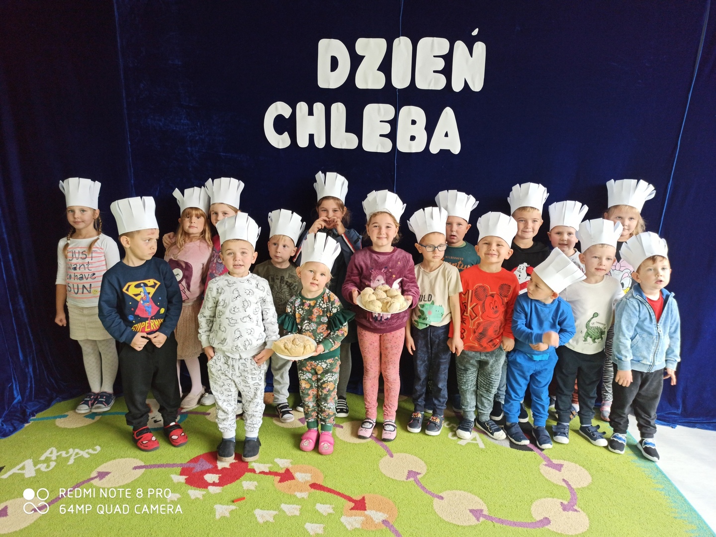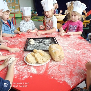 18 września przedszkolaki obchodziły Dzień Chleba. Dzieci podczas zajęć dowiedziały się w jaki sposób powstaje chleb na podstawie historyjki obrazkowej „ Od ziarenka do bochenka oraz filmu edukacyjnego „ W piekarni”. Najwięcej zabawy sprawiło dzieciom wyrabianie ciasta, formowanie bułek. Gdy wypieki rosły w piekarniku, przedszkolaki zabrały się za lepienie z masy solnej chlebów, rogali, chałek, drożdżówek itp. Na koniec zajęć dzieci zajadały się upieczonym chrupiącym chlebem oraz złocistymi bułeczkami. Wszystkim przedszkolakom bardzo smakowało.