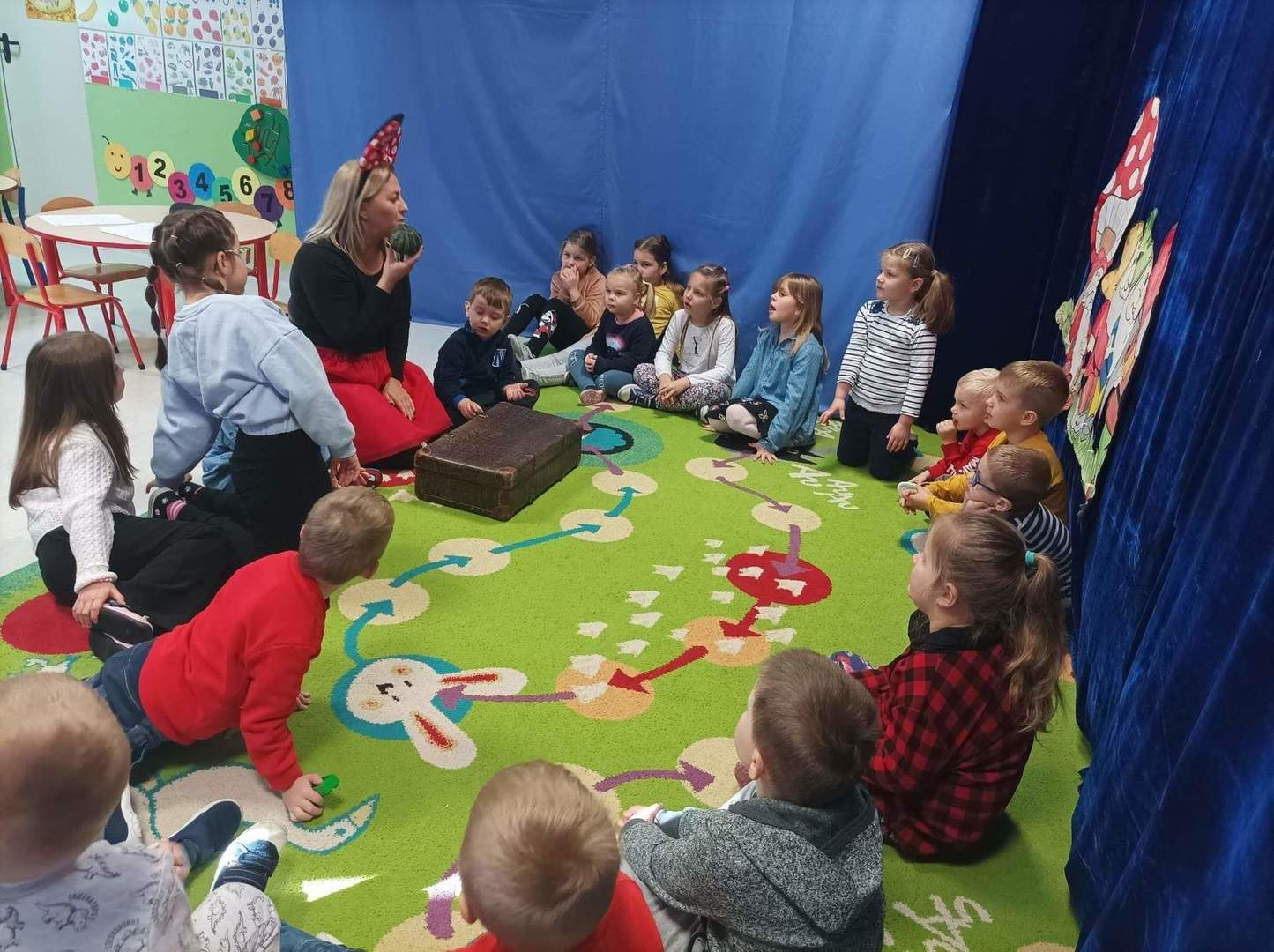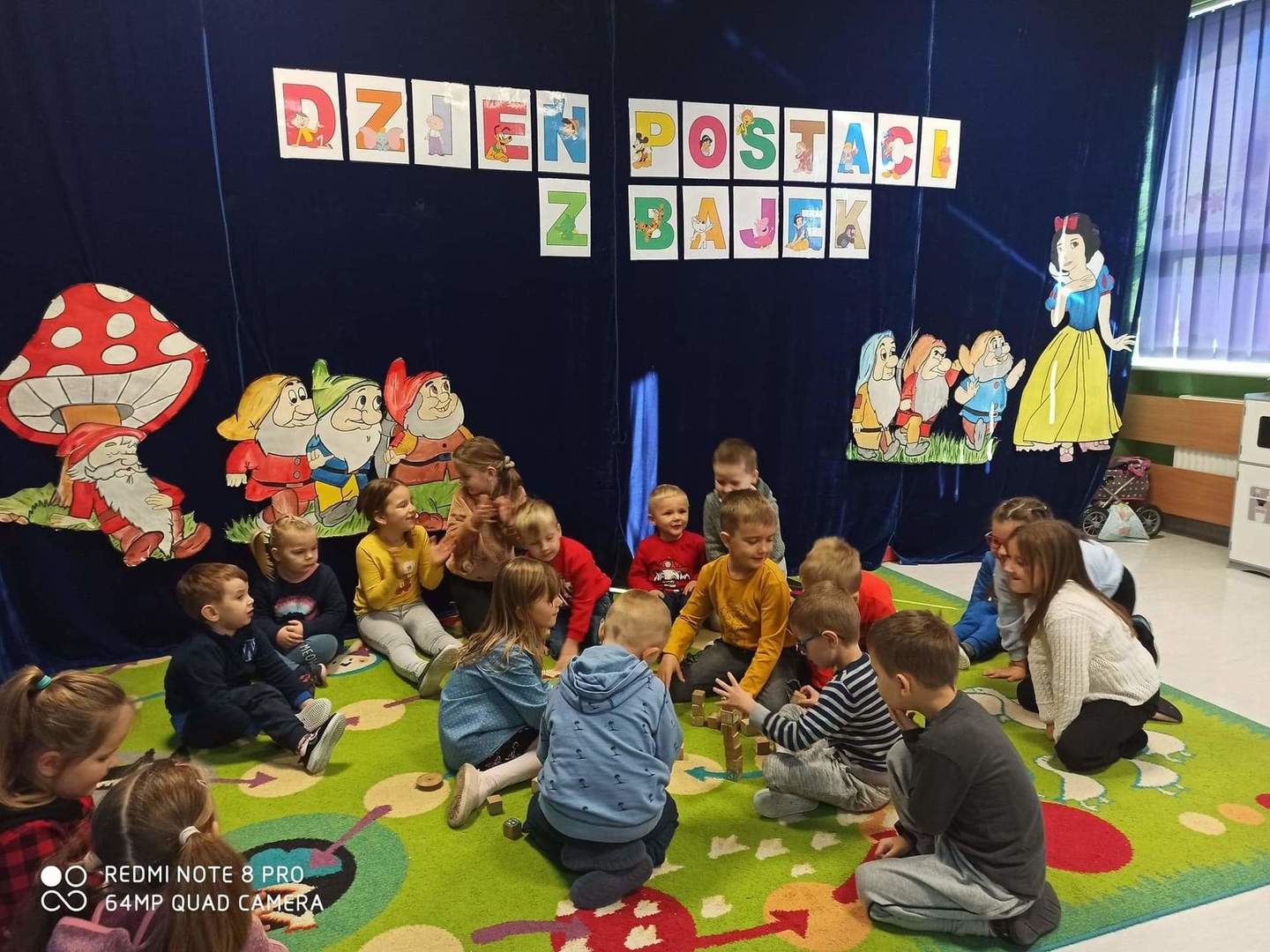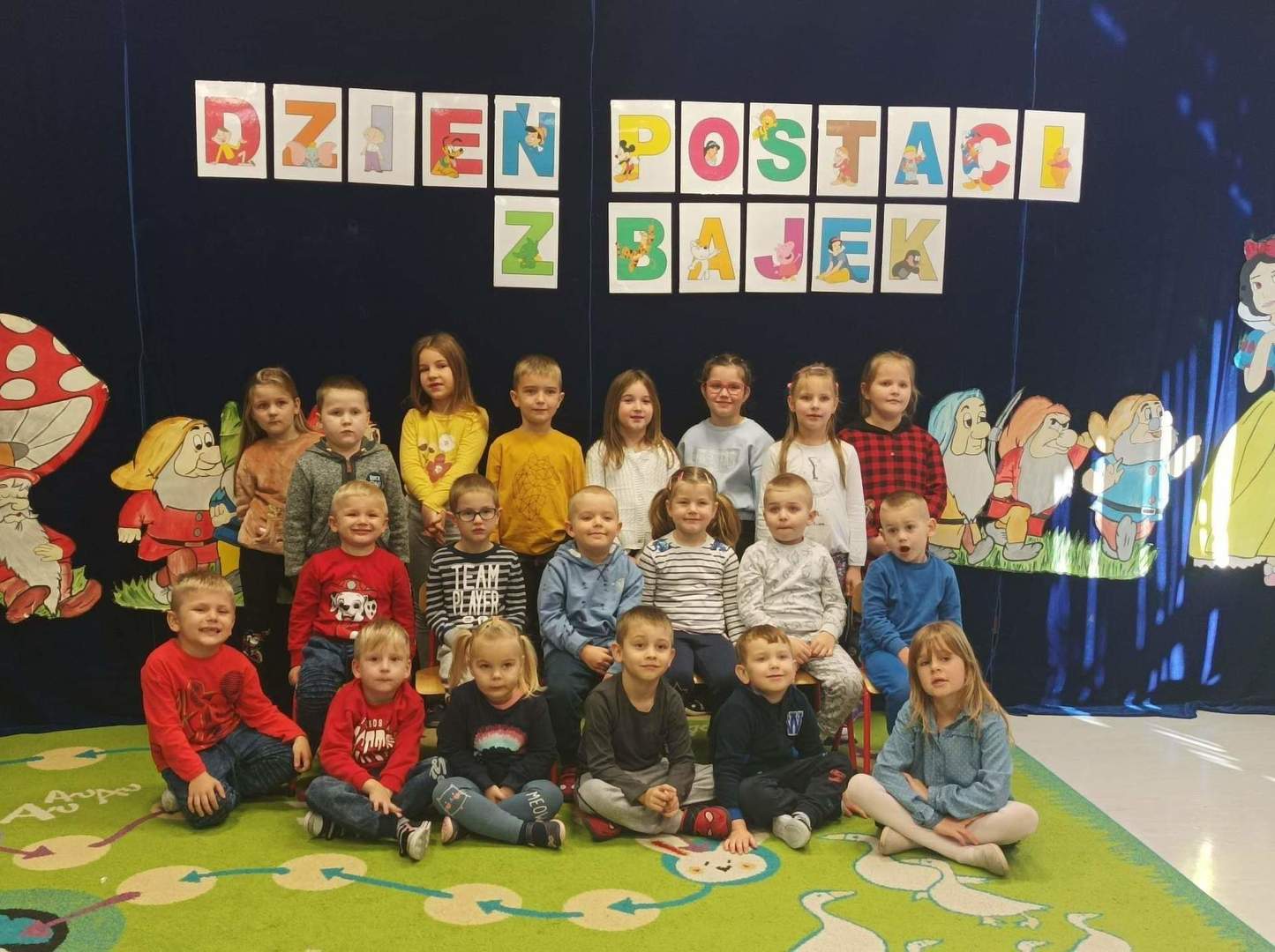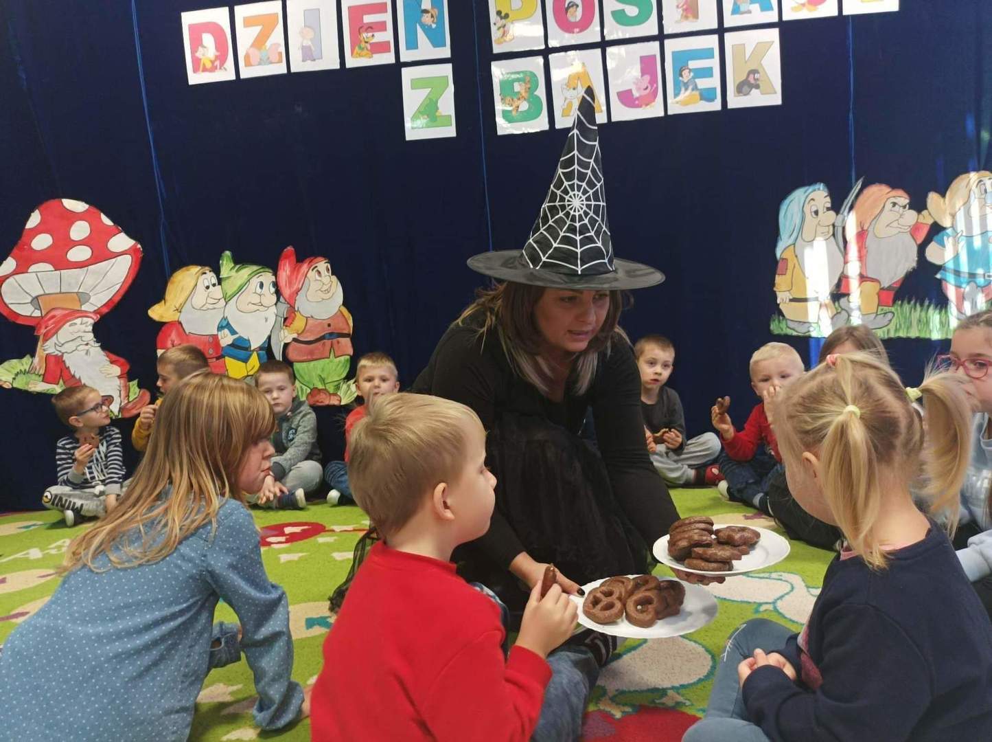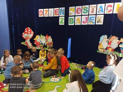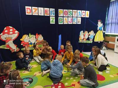 Z okazji Dnia Postaci z Bajek przedszkolaki wzięły udział w bajkowym spotkaniu, podczas którego opowiadały o swoich ulubionych bajkowych postaciach. Były zabawy wymagające wykazania się znajomością treści bajek, tych bardziej i mniej znanych, między innymi dzieci rozwiązywały zagadki, rozpoznawały bajki po rekwizycie oraz po wysłuchaniu fragmentu książki.