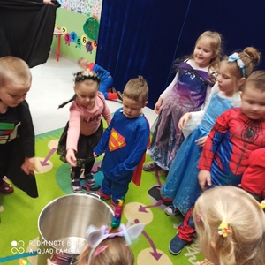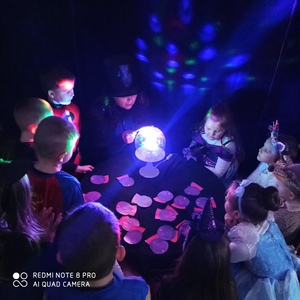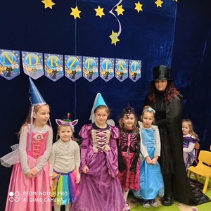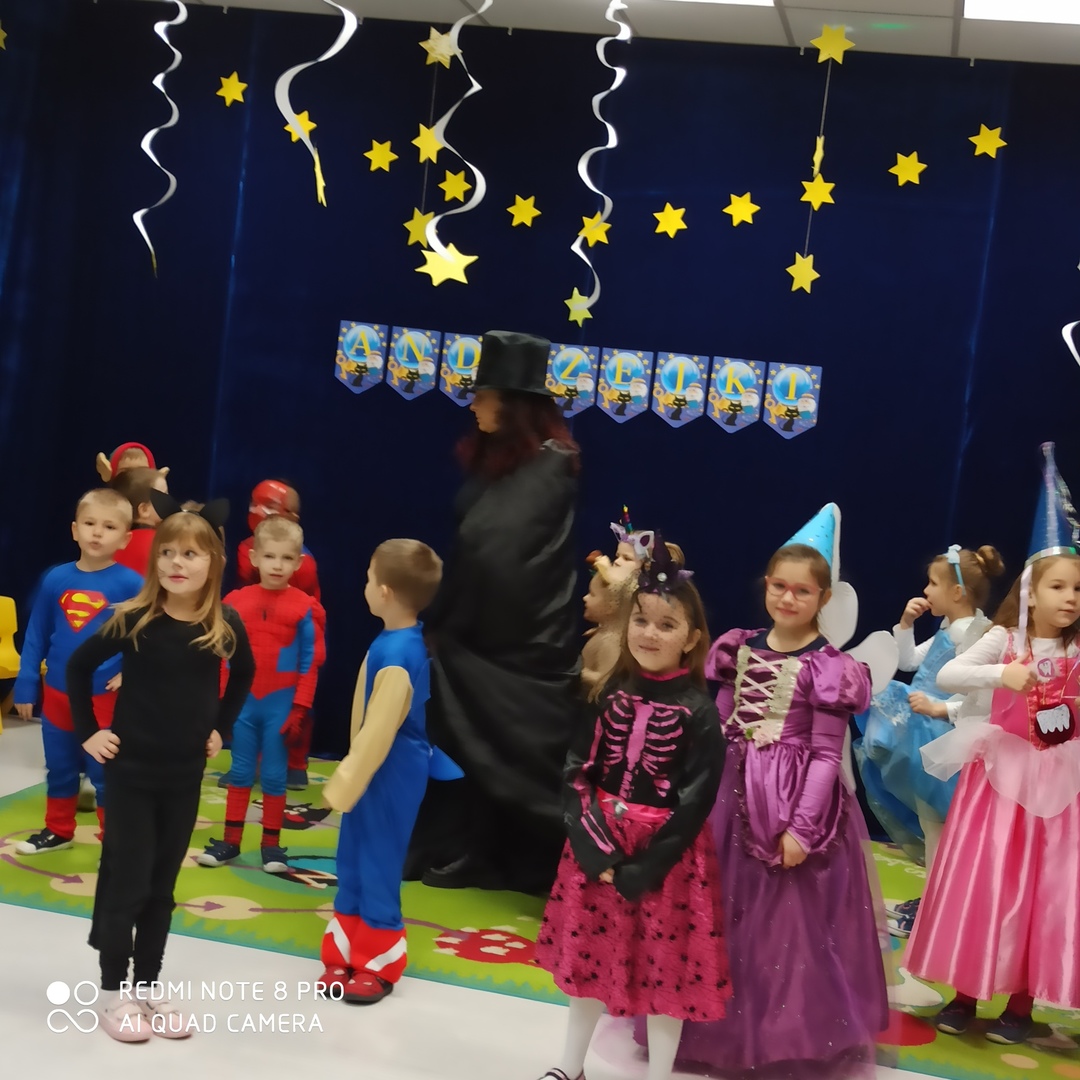 Koniec listopada to czas Andrzejek - czarów i wróżb. Jest to czas wspaniałej zabawy a jednocześnie źródło szacunku dla tradycji i obrzędów ludowych. Dzieci z naszego przedszkola również chciały zajrzeć w przyszłość i sprawdzić co je czeka. I tak właśnie się stało 30 listopada. Nastrojowa muzyka i czarodziejskie dekoracje wprowadziły dzieci w świat magii. Wróżby przeplatane były tańcami oraz zabawami przy skocznej muzyce. Andrzejkową atmosferę dopełniały kolorowe stroje, w które dzieci były przebrane. Na balu pojawiły się m.in. wróżki, czrodziejki oraz inne bajkowe postacie. Andrzejki przyniosły dzieciom wiele radości.
