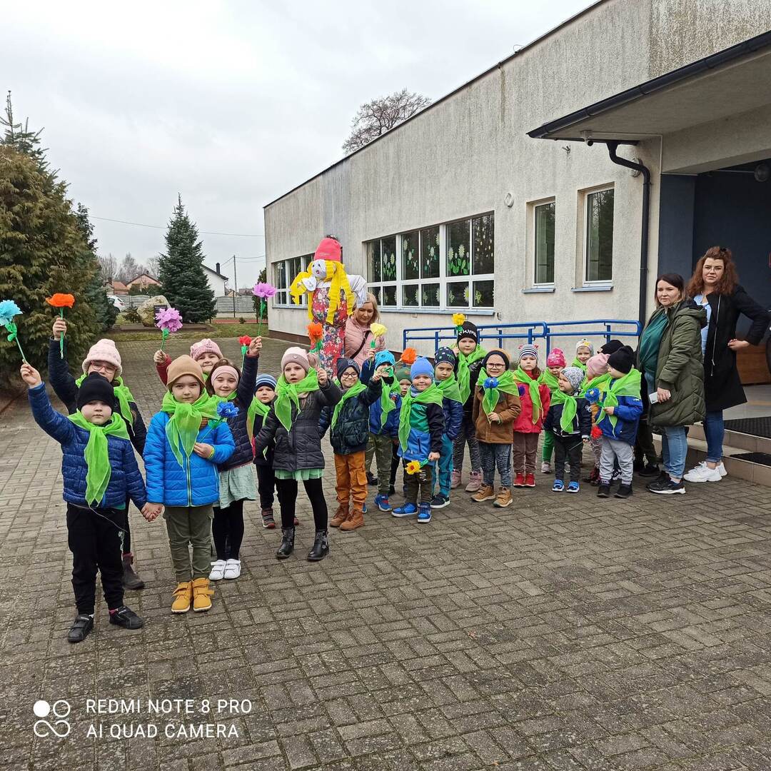 21 marca wszystkie dzieci z naszego przedszkola świętowały ,,Pierwszy Dzień Wiosny". Aby podkreślić charakter tego dnia przedszkolaki przyszły ubrane na zielono. Mimo wielu atrakcji najbardziej oczekiwaną częścią dnia było wyjście na spacer, podczas którego mogliśmy pożegnać zimę i powitać wiosnę. Dzieci radośnie maszerowały w wiosennym pochodzie, na czele którego widniała Marzanna. Jesteśmy pewni, że starania naszych przedszkolaków sprawią, że wiosna zawita do nas na dobre.