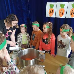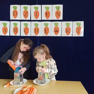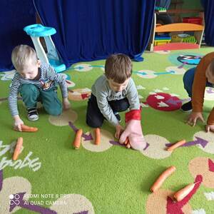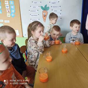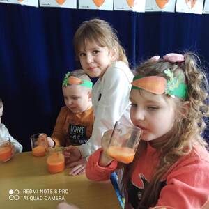 Dzień 12 kwietnia był dniem wyjątkowo pomarańczowym, marchewkowym, zdrowym i witaminowym. W tym dniu przedszkolaki poznały zalety i walory marchewki. Ten dzień wypełniony był zabawami, konkursami. Dzieci degustowały sok oraz ciasto marchewkowe.