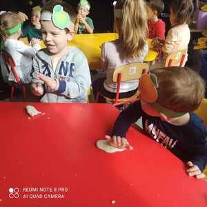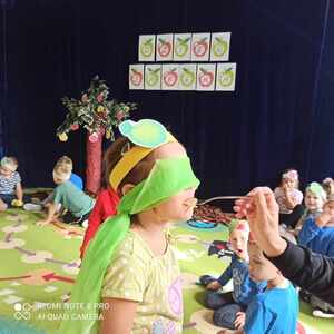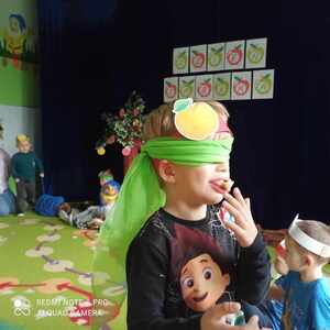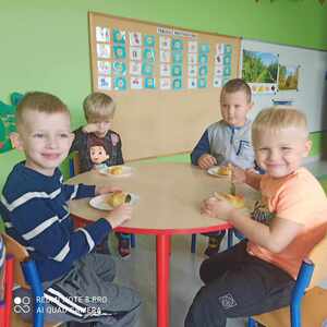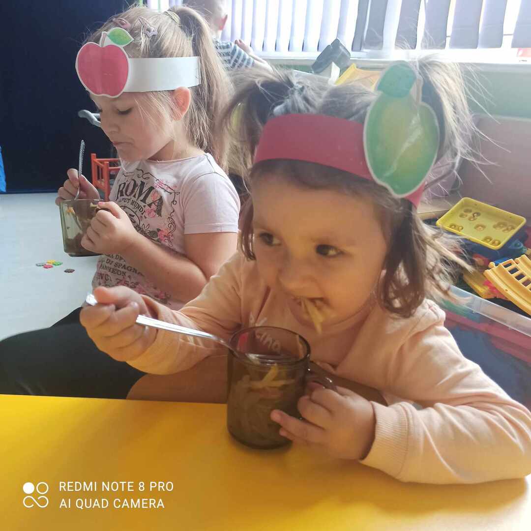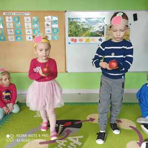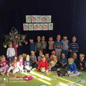 W czwartek 5 października obchodziliśmy w przedszkolu Dzień Jabłka. Celem zajęć i wspólnej zabawy było zachęcenie dzieci do spożywania jabłek i ich przetworów jako źródła witamin, wyrabianie nawyku zdrowego odżywiania oraz utrwalenie wiadomości na temat tego owocu. Obchody Dnia Jabłka rozpoczęto od rozmów na temat jego wyglądu, koloru, wielkości, kształtu oraz smaku. Dzieci wszechstronnie poszerzały wiedzę o jabłku, poznawały różne gatunki jabłek, a także zdobywały wiadomości na temat potraw i przetworów z jabłek. Ponadto przedszkolaki rozwiązywały zagadki, słuchały wierszy i piosenek o jabłuszku. Nie zabrakło też zabaw ruchowych, które dowiodły, że jabłko oprócz swoich cennych walorów smakowych, może posłużyć jako inspiracja do wielu konkursów. Po emocjach związanych z zabawą, najbardziej oczekiwanym punktem dnia był jabłkowy poczęstunek – szarlotka. Okazało się, że deser bardzo przypadł do gustu naszym przedszkolakom.