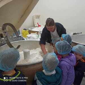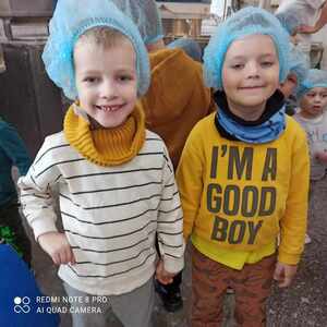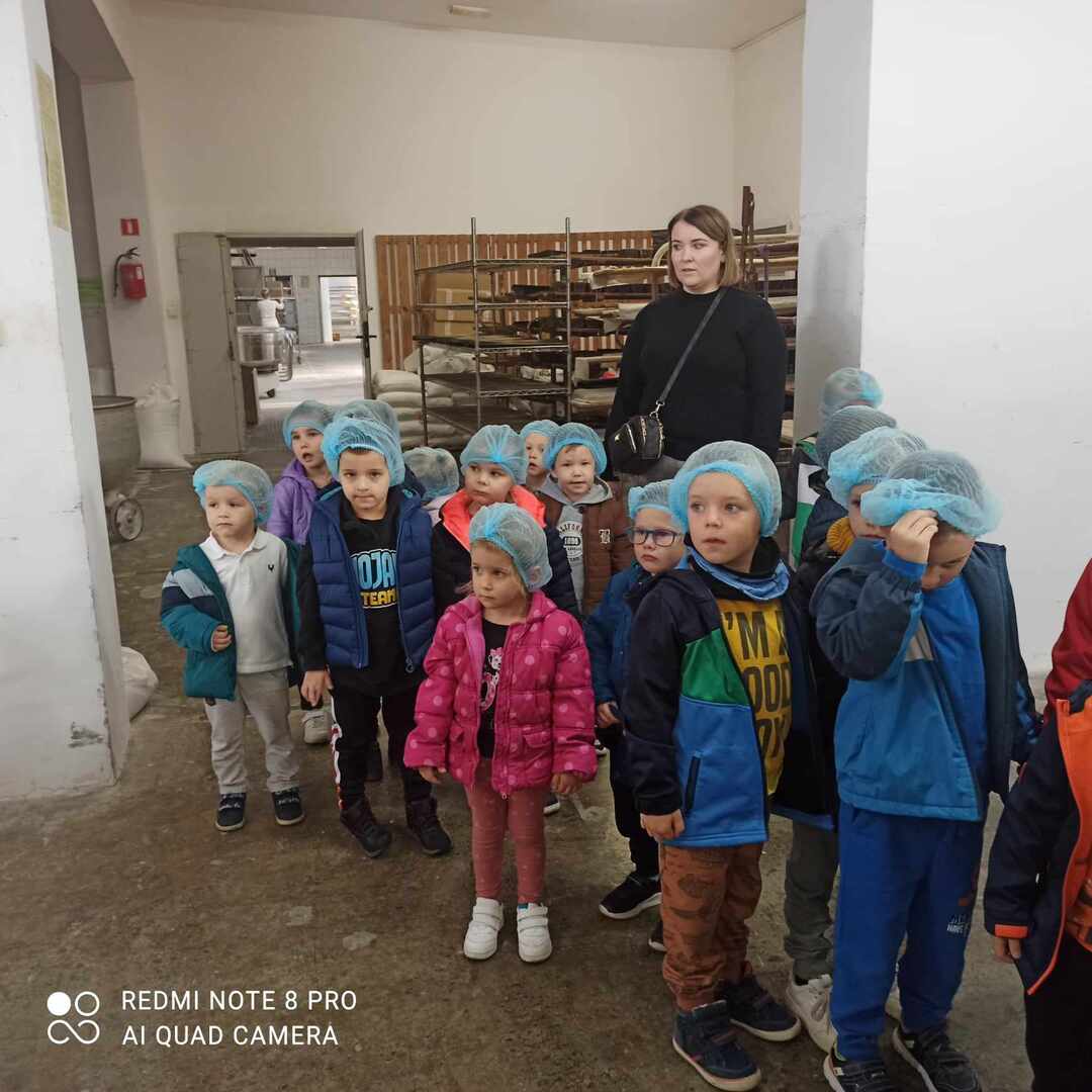 Dnia 17 października przedszkolaki wybrały się z wizytą do Piekarni w Wilkowyi. Dzieci miały możliwość zobaczenia jak wygląda piekarnia, przyjrzenia się pracy piekarza, poznania etapów powstawania pieczywa oraz produktów potrzebnych do jego wypieku. Zobaczyły również maszyny, które pomagają w pracy piekarzowi, misy na ciasto, wózki z upieczonym chlebem i wielkie łopaty do wyjmowania pieczywa z pieca. Największe wrażenie wywarł na przedszkolakach ogromny piec. Dowiedzieliśmy się w jakiej temperaturze i w jakim czasie pieczony jest chleb. Zaprezentowano również dzieciom sposób wyrabiania rogalików. Na koniec wszyscy zostaliśmy poczęstowani przepysznymi bułkami i rogalikami.