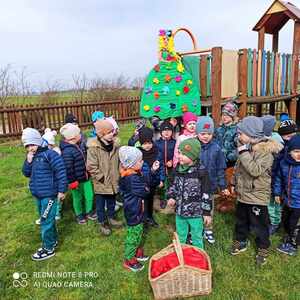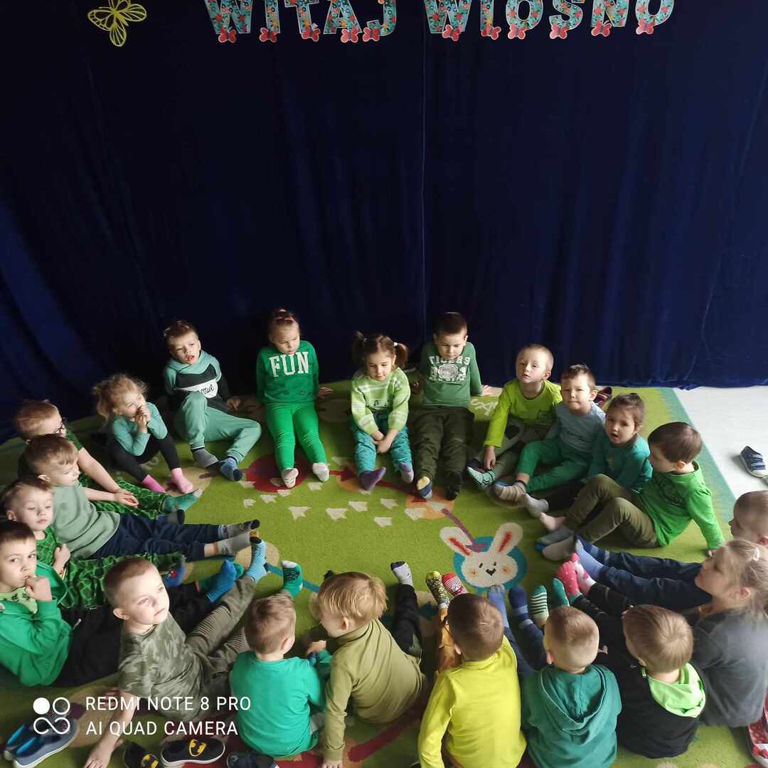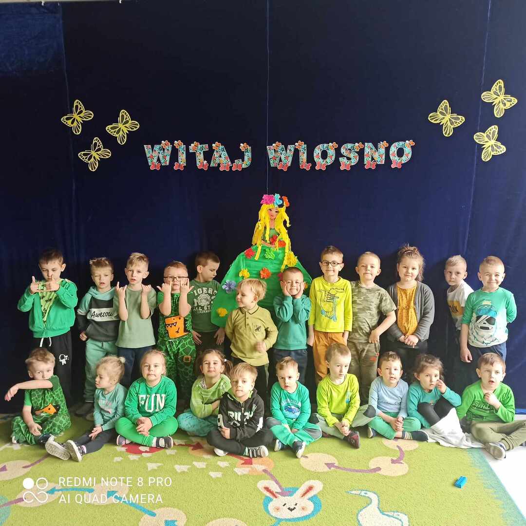 W czwartek 21 marca dzieci obchodziły Pierwszy Dzień Wiosny. Aby podkreślić charakter tego dnia , przedszkolaki przyszły ubrane na zielono. Świętowanie rozpoczęto od obejrzenia przedstawienia kukiełkowego pt. ”Wiosenne zamieszanie”, przygotowanego przez nauczycielki z naszego przedszkola. Dzieci dostały list od Pani Wiosny z zadaniami do wykonania. Przedszkolaki poradziły sobie z nimi doskonale. Zwieńczeniem wspólnych zabaw było odnalezienie Pani Wiosny, którą dzieci zabrały do przedszkola.