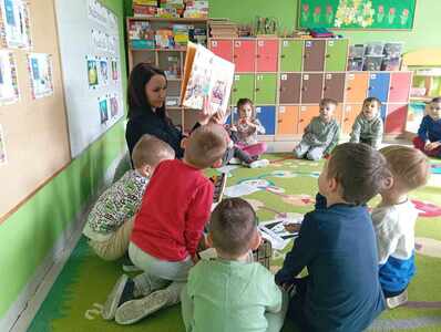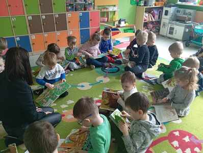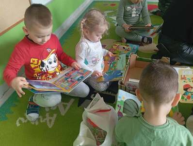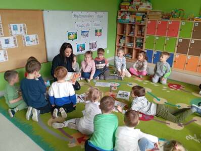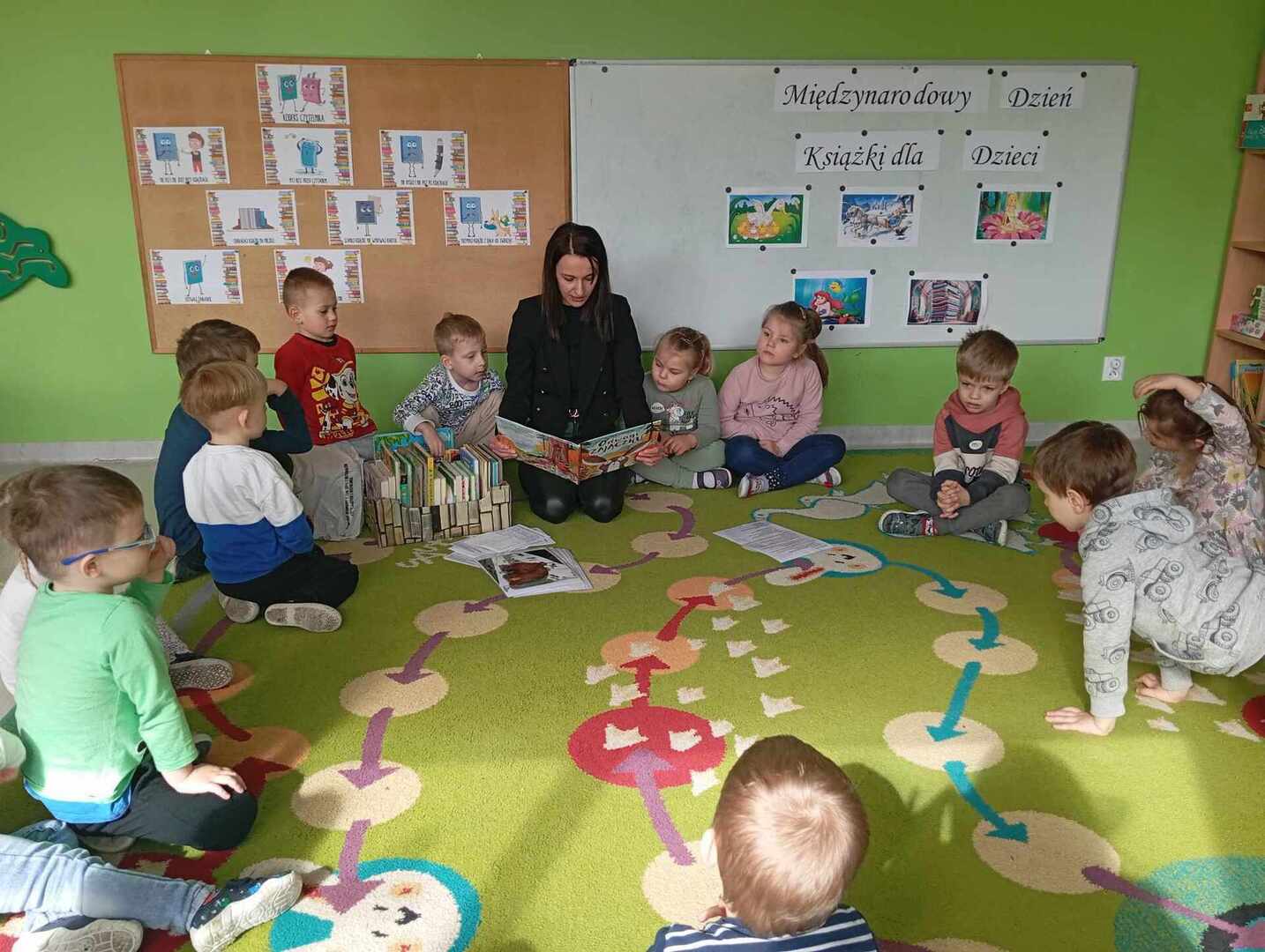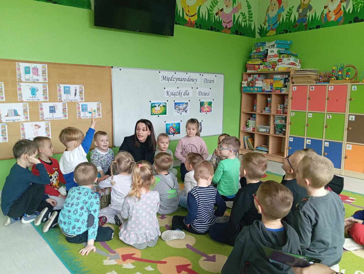 Z okazji Międzynarodowego Dnia Książki dla Dzieci odwiedziła nas pani Martyna Woźniak, która pracuje w Bibliotece Publicznej w Kotlinie. Na początku spotkania pani Martyna opowiedziała na czym polega praca bibliotekarki a następnie pokazała dzieciom przyniesione książki. Dzieci oglądały je z dużym zaciekawieniem. Przedszkolaki wysłuchały również bajki przeczytanej przez naszego gościa a następnie odpowiadały na pytania dotyczące treści tej bajki. Na koniec spotkania wszyscy otrzymali od pani Martyny słodki upominek.