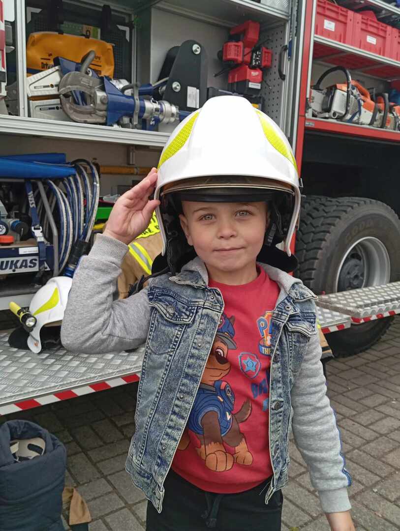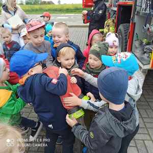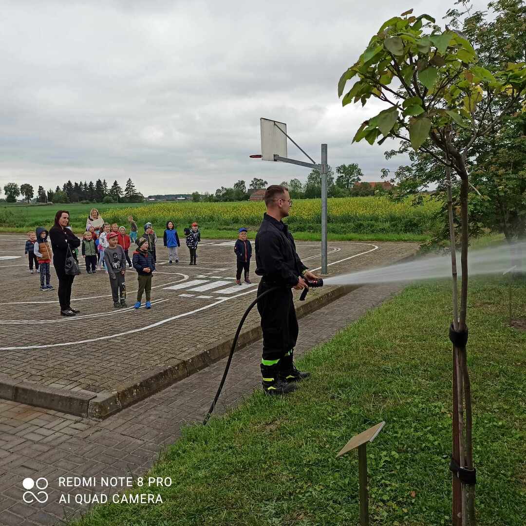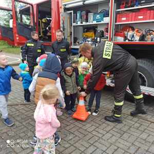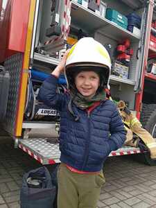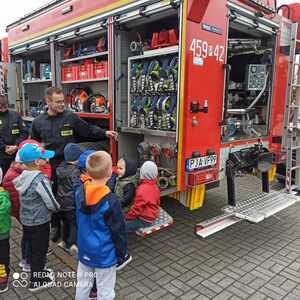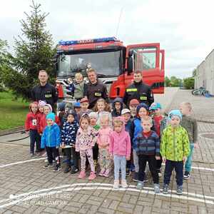 W dniu 7 maja odwiedzili nas wyjątkowi goście – strażacy z Ochotniczej Straży Pożarnej w Racendowie. W trakcie spotkania goście opowiedzieli nam o swojej codziennej pracy, o tym, że jest ciężka i niebezpieczna, ale bardzo potrzebna i dająca dużo satysfakcji. Dzieci dowiedziały się, że praca strażaka nie polega tylko na gaszeniu pożarów, ale również na udzielaniu pomocy ludziom podczas powodzi i wypadków samochodowych. Dzieci miały możliwość podziwiać wyposażenie, jakim dysponują strażacy podczas swojej pracy. Jednak największe zainteresowanie wzbudził wielki czerwony wóz strażacki, do którego każdy mógł wejść i poczuć się jak prawdziwy strażak. Wrażenia jakie dostarczyli nam strażacy na długo pozostaną w naszej pamięci.