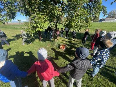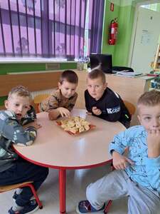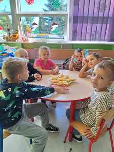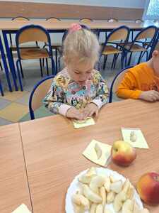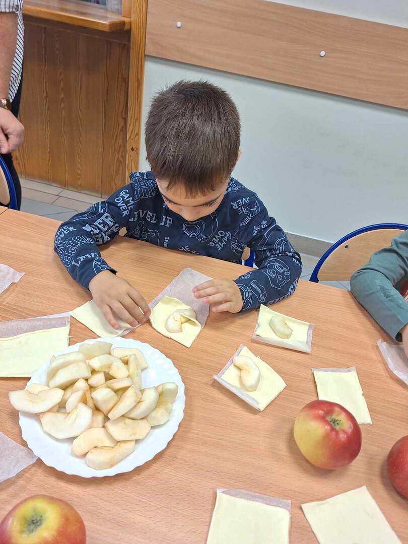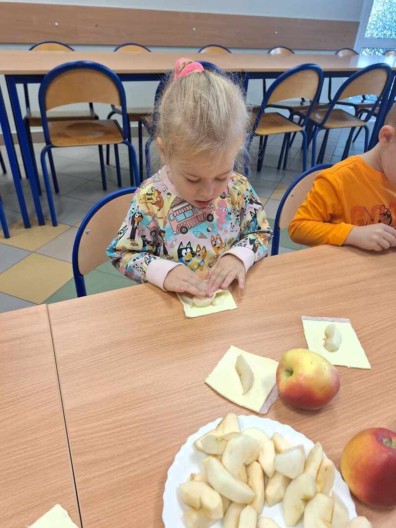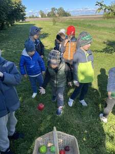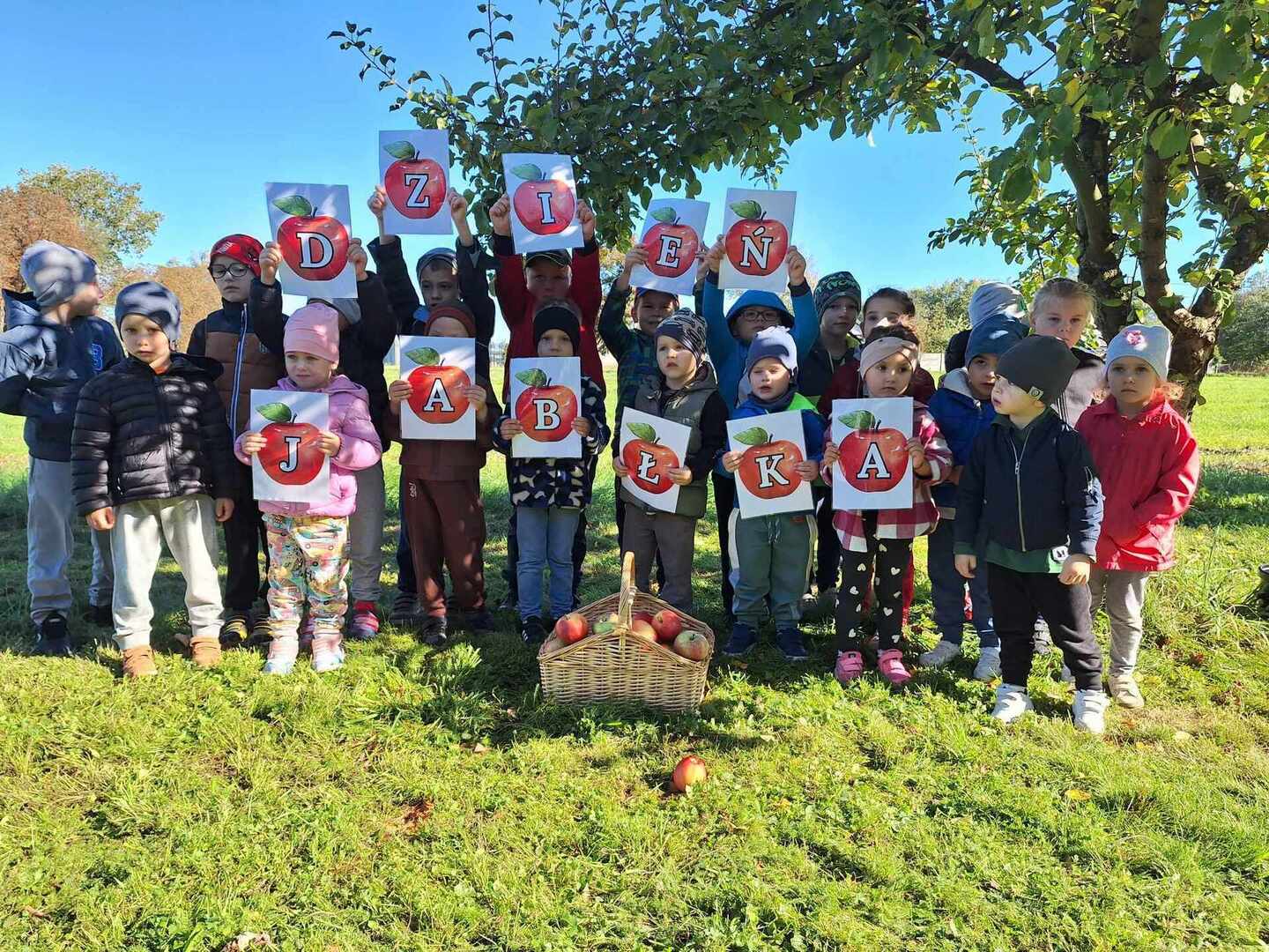 Dnia 27 września obchodziliśmy Dzień Jabłka. Z tej okazji tata jednego z naszych przedszkolaków pan Lewandowski zaprosił dzieci do sadu. Przedszkolaki mogły zobaczyć jak wygląda sad oraz pomogły pozbierać jabłka. Oczywiście były też zadania do wykonania m.in. przeliczanie , określenie wielkości, slalom, rzut do kosza. Obdarowane jabłkami dzieci, wróciły zadowolone do przedszkola. Na deser przedszkolaki upiekły pyszne ciastka z jabłkami."Dni tematyczne" przeprowadzane w taki właśnie sposób zachęcają dzieci do sięgania po owoce oraz promują zdrowy styl życia.