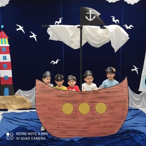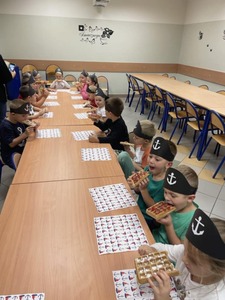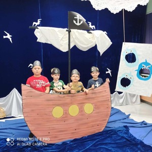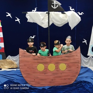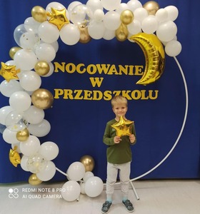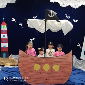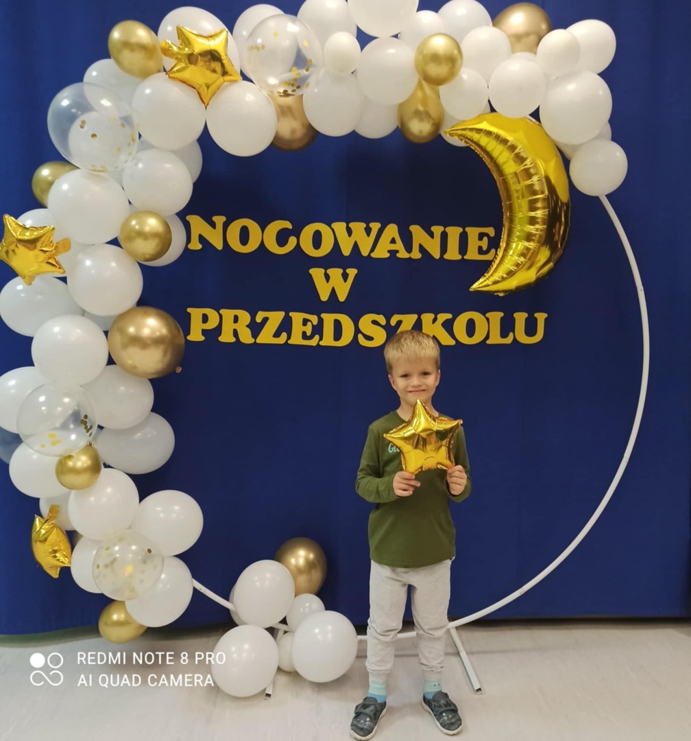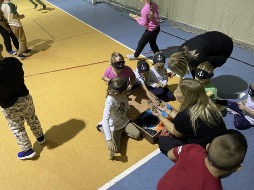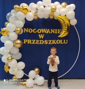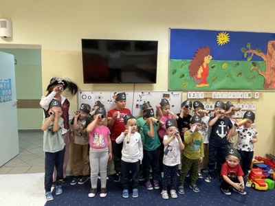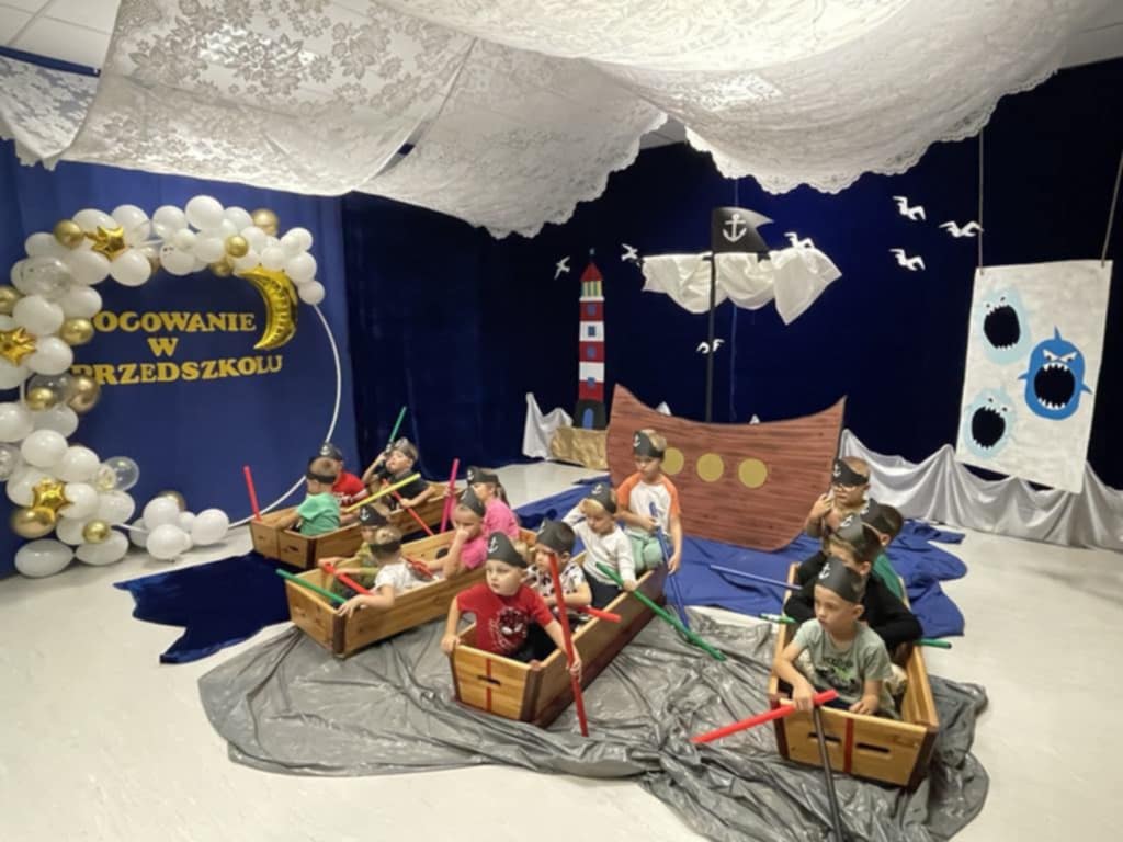 4 października dzieci zaopatrzone w śpiwory, koce, poduszki i ulubione pluszaki zjawiły się o godz.17:00 w przedszkolu. Noc spędzona w przedszkolu to wielka atrakcja, ale też okazja do kształtowania samodzielności. Przede wszystkim jednak to dobra zabawa, o czym szybko się przekonały. Nasze przedszkole zamieniło się w okręt piracki a dzieci w kamratów, którzy pod wodzą kapitana wyruszyli na poszukiwanie skarbu. Dzieci wykonywały zadania zgodnie ze wskazówkami zawartymi w pamiętniku pirata. Wyprawa zakończyła się sukcesem. Odnaleziono skarb. Zmęczone dzieci udały się na zasłużony odpoczynek. Następnego dnia po śniadaniu przedszkolaki z uśmiechami na twarzach wróciły do domu. To była niesamowita przygoda.