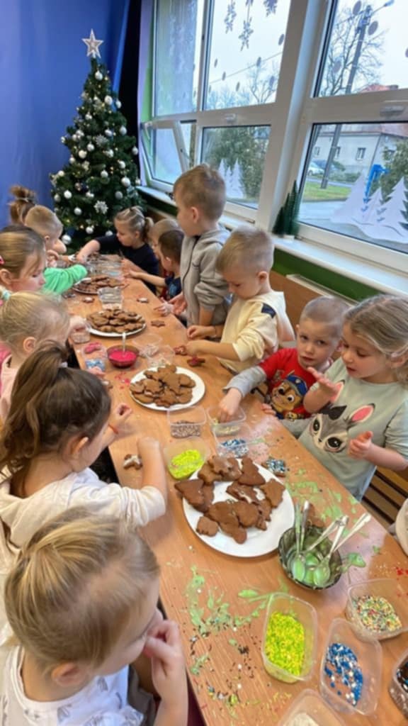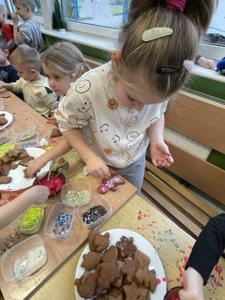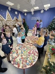 5 grudnia odbyły się w przedszkolu Warsztaty Świąteczne, które zgromadziły zarówno dzieci jak i ich rodziców. Przedszkolaki ozdabiały pierniki. Kolorowe lukry, posypki i inne dekoracje pozwoliły małym artystom na wyrażenie swojej kreatywności i stworzenie prawdziwych dzieł sztuki cukierniczej. Rodzice z kolei tworzyli piękne bożonarodzeniowe stroiki, które wystawiono na sprzedaż na Świątecznym Kiermaszu. Wspólna twórczość w atmosferze zabawy, zaangażowanie, przeżyte emocje, a co najważniejsze czas, który dzieci spędziły z rodzicami to bardzo cenne doświadczenie dla obu stron.