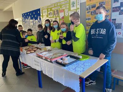 Harcerze z 5DH im T. Kościuszki Sławoszew w dniu 24 lutego 2022 w "Tłusty Czwartek" sprzedawali pączki w szkole. Dziękujemy za wsparcie naszej harcerskiej działalności.