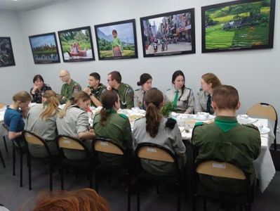 Wigilia instruktorów Hufca Jarocin - 22.12.2021. Spotkanie opłatkowe w Pleszewie. W związku z obostrzeniami Covid-19 życzenia instruktorzy łamiąc się opłatkiem przekazywali w kręgu bez kontaktu cielesnego. W spotkaniu uczestniczyła przewodnicząca Rady Przyjaciół Harcerstwa Hufca Jarocin...