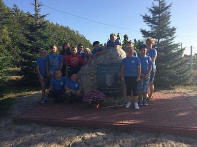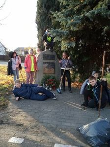 Akcja 5DH - Sprzątanie Świata wrzesień 2021. Uporządkowaliśmy pomnik patrona szkoły A.Fiedlera oraz głaz przy kościele i pomnik powstańca na cmentarzu w Sławoszewie.