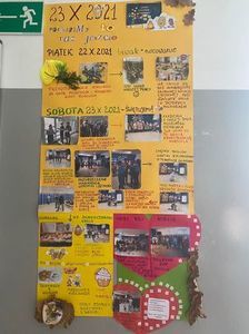2-dniowy biwak w szkole połączony z lokalną imprezą „Święto Pieczonego Ziemniaka”- 22-23.10.2021. Przyrzeczenie DH W.Mączka i DH Sz.Goździaszka, wybór „Kartoflanego Króla z okazów ziemniaków- 1 m. R.Przestacki kl.3, 2 m.M.Prześlica kl.8. i 3m. J.Hajdysz...